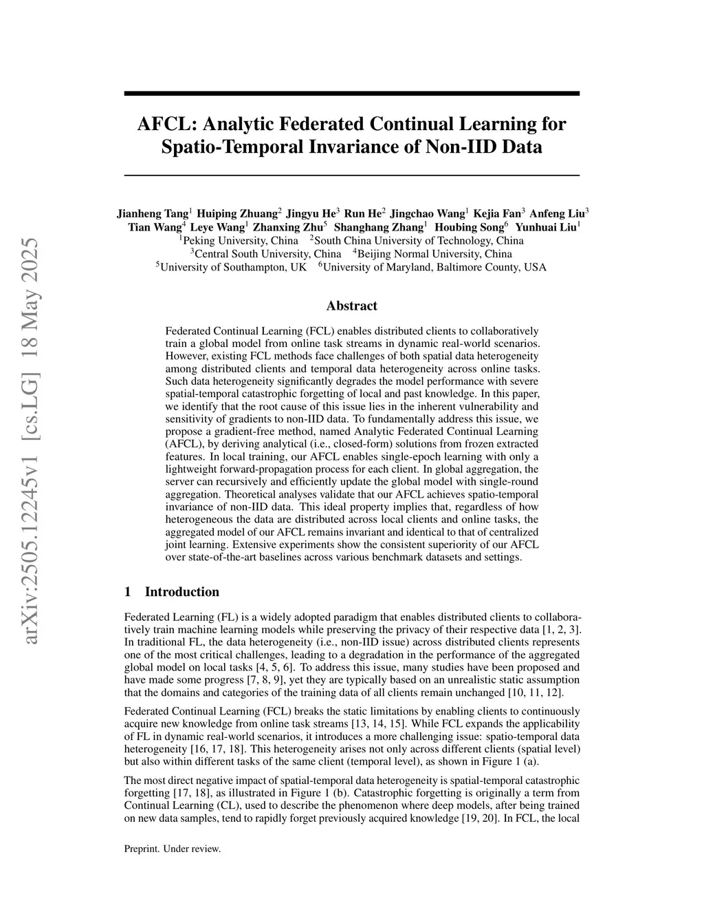 AFCL: Analytic Federated Continual Learning for Spatio-Temporal Invariance of Non-IID Data