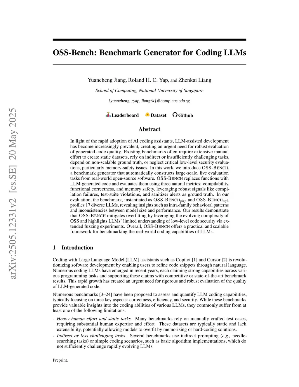 OSS-Bench: Benchmark Generator for Coding LLMs