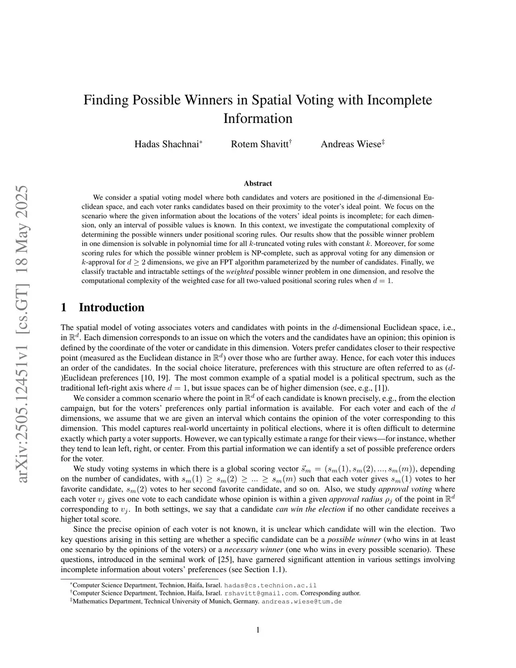 Finding Possible Winners in Spatial Voting with Incomplete Information
