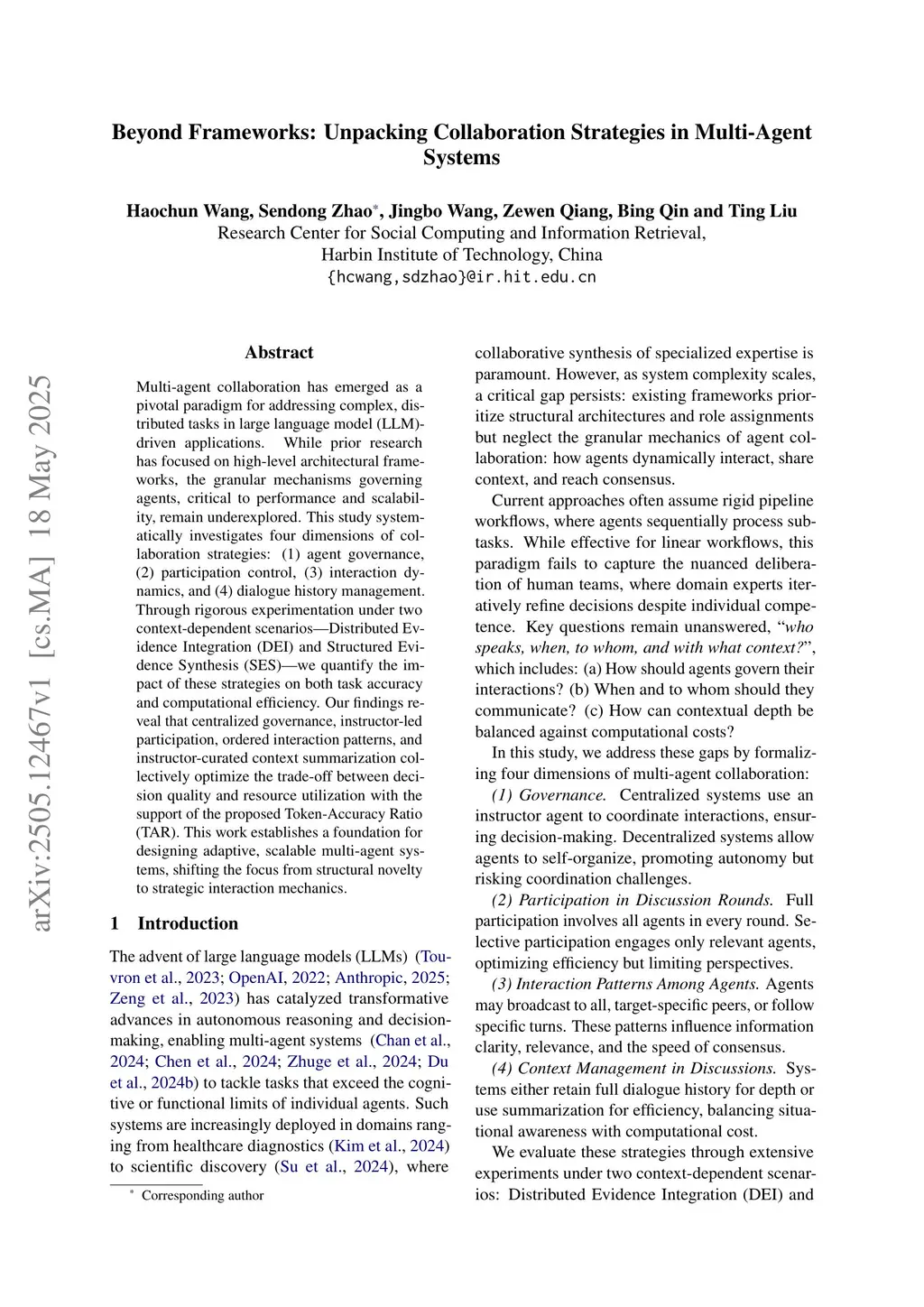 Multi-agent collaboration has emerged as a pivotal paradigm for addressing complex, distributed tasks in large language model (LLM)-driven applications. While prior research has focused on high-level architectural frameworks, the granular mechanisms governing agents, critical to performance and scalability, remain underexplored. This study systematically investigates four dimensions of collaboration strategies: (1) agent governance, (2) participation control, (3) interaction dynamics, and (4) dialogue history management. Through rigorous experimentation under two context-dependent scenarios: Distributed Evidence Integration (DEI) and Structured Evidence Synthesis (SES), we quantify the impact of these strategies on both task accuracy and computational efficiency. Our findings reveal that centralized governance, instructor-led participation, ordered interaction patterns, and instructor-curated context summarization collectively optimize the trade-off between decision quality and resource utilization with the support of the proposed Token-Accuracy Ratio (TAR). This work establishes a foundation for designing adaptive, scalable multi-agent systems, shifting the focus from structural novelty to strategic interaction mechanics.