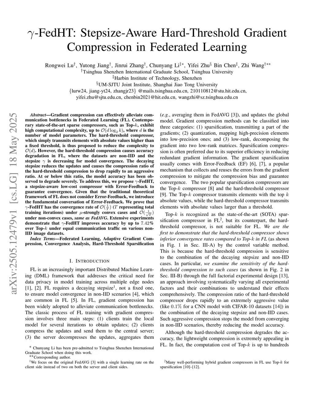 Gradient compression can effectively alleviate communication bottlenecks in Federated Learning (FL). Contemporary state-of-the-art sparse compressors, such as Top-, exhibit high computational complexity, up to , where is the number of model parameters. The hard-threshold compressor, which simply transmits elements with absolute values higher than a fixed threshold, is thus proposed to reduce the complexity to . However, the hard-threshold compression causes accuracy degradation in FL, where the datasets are non-IID and the stepsize is decreasing for model convergence. The decaying stepsize reduces the updates and causes the compression ratio of the hard-threshold compression to drop rapidly to an aggressive ratio. At or below this ratio, the model accuracy has been observed to degrade severely. To address this, we propose -FedHT, a stepsize-aware low-cost compressor with Error-Feedback to guarantee convergence. Given that the traditional theoretical framework of FL does not consider Error-Feedback, we introduce the fundamental conversation of Error-Feedback. We prove that -FedHT has the convergence rate of ( representing total training iterations) under -strongly convex cases and under non-convex cases, \textit{same as FedAVG}. Extensive experiments demonstrate that -FedHT improves accuracy by up to over Top- under equal communication traffic on various non-IID image datasets.