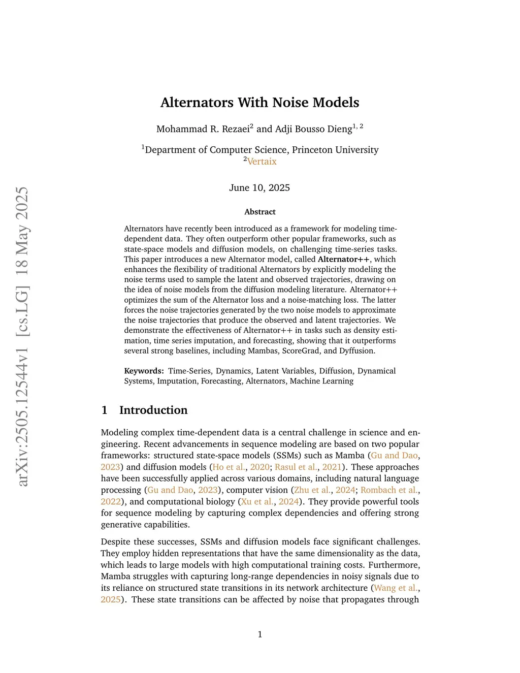 Alternators have recently been introduced as a framework for modeling time-dependent data. They often outperform other popular frameworks, such as state-space models and diffusion models, on challenging time-series tasks. This paper introduces a new Alternator model, called Alternator++, which enhances the flexibility of traditional Alternators by explicitly modeling the noise terms used to sample the latent and observed trajectories, drawing on the idea of noise models from the diffusion modeling literature. Alternator++ optimizes the sum of the Alternator loss and a noise-matching loss. The latter forces the noise trajectories generated by the two noise models to approximate the noise trajectories that produce the observed and latent trajectories. We demonstrate the effectiveness of Alternator++ in tasks such as density estimation, time series imputation, and forecasting, showing that it outperforms several strong baselines, including Mambas, ScoreGrad, and Dyffusion.