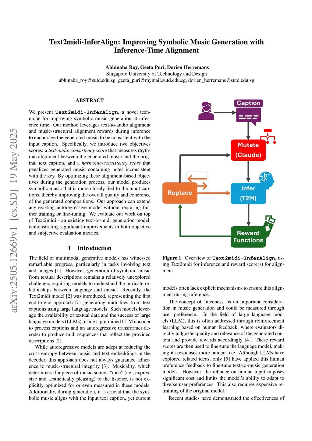 We present Text2midi-InferAlign, a novel technique for improving symbolic music generation at inference time. Our method leverages text-to-audio alignment and music structural alignment rewards during inference to encourage the generated music to be consistent with the input caption. Specifically, we introduce two objectives scores: a text-audio consistency score that measures rhythmic alignment between the generated music and the original text caption, and a harmonic consistency score that penalizes generated music containing notes inconsistent with the key. By optimizing these alignment-based objectives during the generation process, our model produces symbolic music that is more closely tied to the input captions, thereby improving the overall quality and coherence of the generated compositions. Our approach can extend any existing autoregressive model without requiring further training or fine-tuning. We evaluate our work on top of Text2midi - an existing text-to-midi generation model, demonstrating significant improvements in both objective and subjective evaluation metrics.