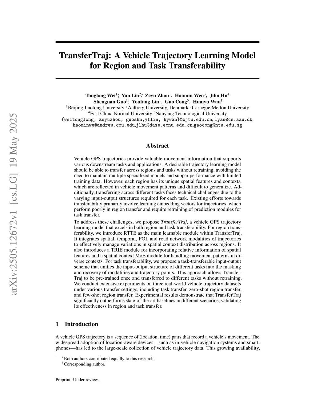 TransferTraj: A Vehicle Trajectory Learning Model for Region and Task Transferability