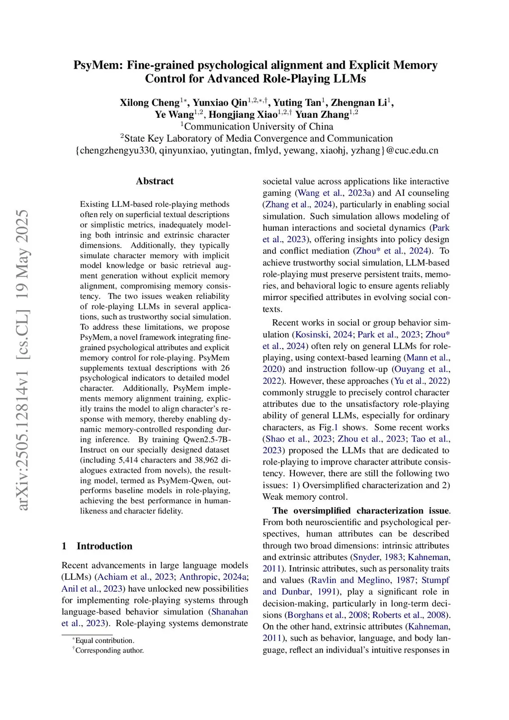 PsyMem: Fine-grained psychological alignment and Explicit Memory Control for Advanced Role-Playing LLMs