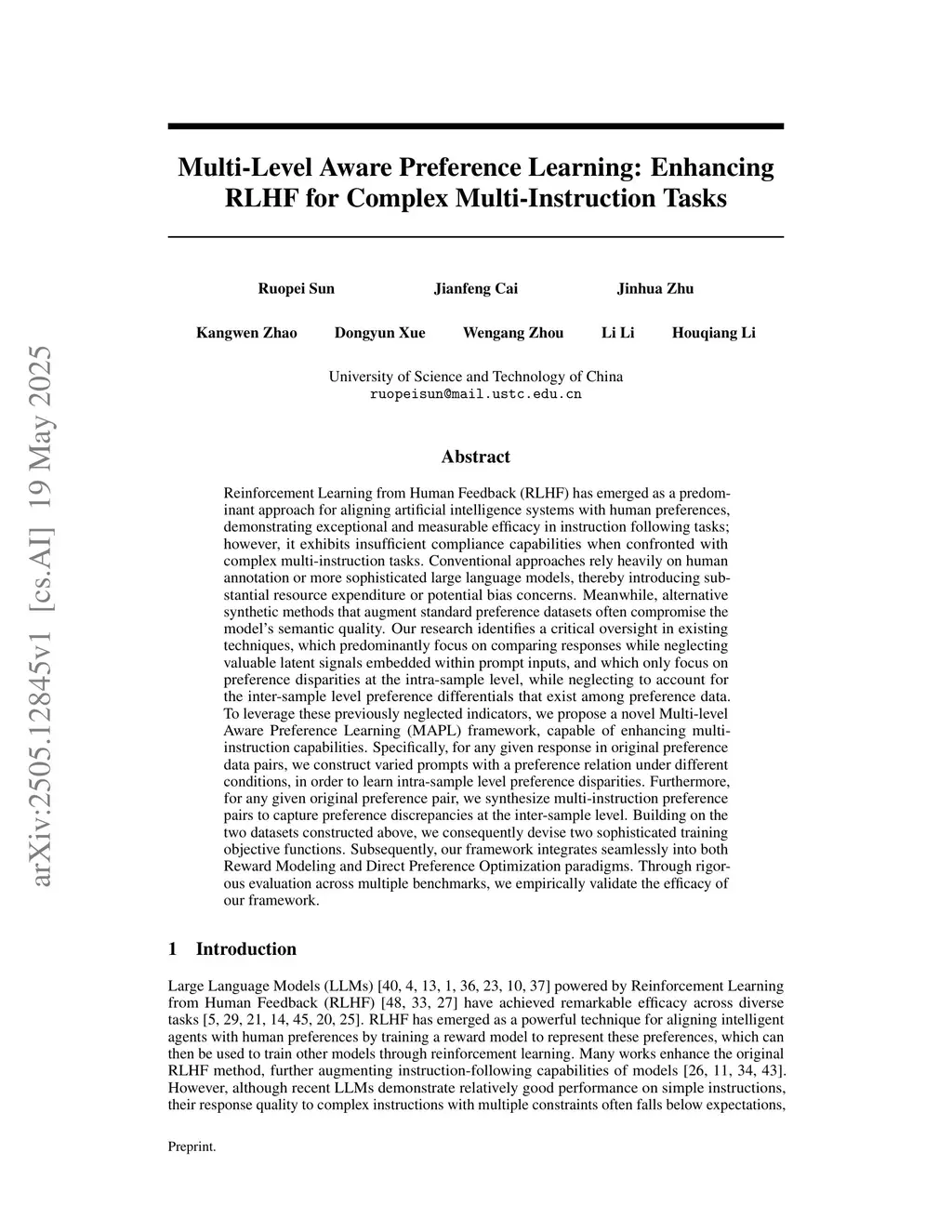 RLHF has emerged as a predominant approach for aligning artificial intelligence systems with human preferences, demonstrating exceptional and measurable efficacy in instruction following tasks; however, it exhibits insufficient compliance capabilities when confronted with complex multi-instruction tasks. Conventional approaches rely heavily on human annotation or more sophisticated large language models, thereby introducing substantial resource expenditure or potential bias concerns. Meanwhile, alternative synthetic methods that augment standard preference datasets often compromise the model's semantic quality. Our research identifies a critical oversight in existing techniques, which predominantly focus on comparing responses while neglecting valuable latent signals embedded within prompt inputs, and which only focus on preference disparities at the intra-sample level, while neglecting to account for the inter-sample level preference differentials that exist among preference data. To leverage these previously neglected indicators, we propose a novel Multi-level Aware Preference Learning (MAPL) framework, capable of enhancing multi-instruction capabilities. Specifically, for any given response in original preference data pairs, we construct varied prompts with a preference relation under different conditions, in order to learn intra-sample level preference disparities. Furthermore, for any given original preference pair, we synthesize multi-instruction preference pairs to capture preference discrepancies at the inter-sample level. Building on the two datasets constructed above, we consequently devise two sophisticated training objective functions. Subsequently, our framework integrates seamlessly into both Reward Modeling and Direct Preference Optimization paradigms. Through rigorous evaluation across multiple benchmarks, we empirically validate the efficacy of our framework.