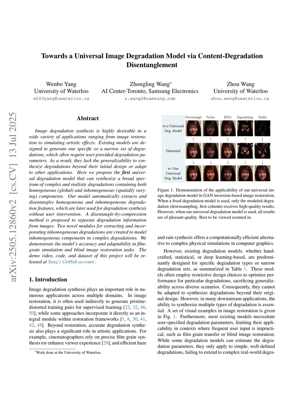 Towards a Universal Image Degradation Model via Content-Degradation Disentanglement