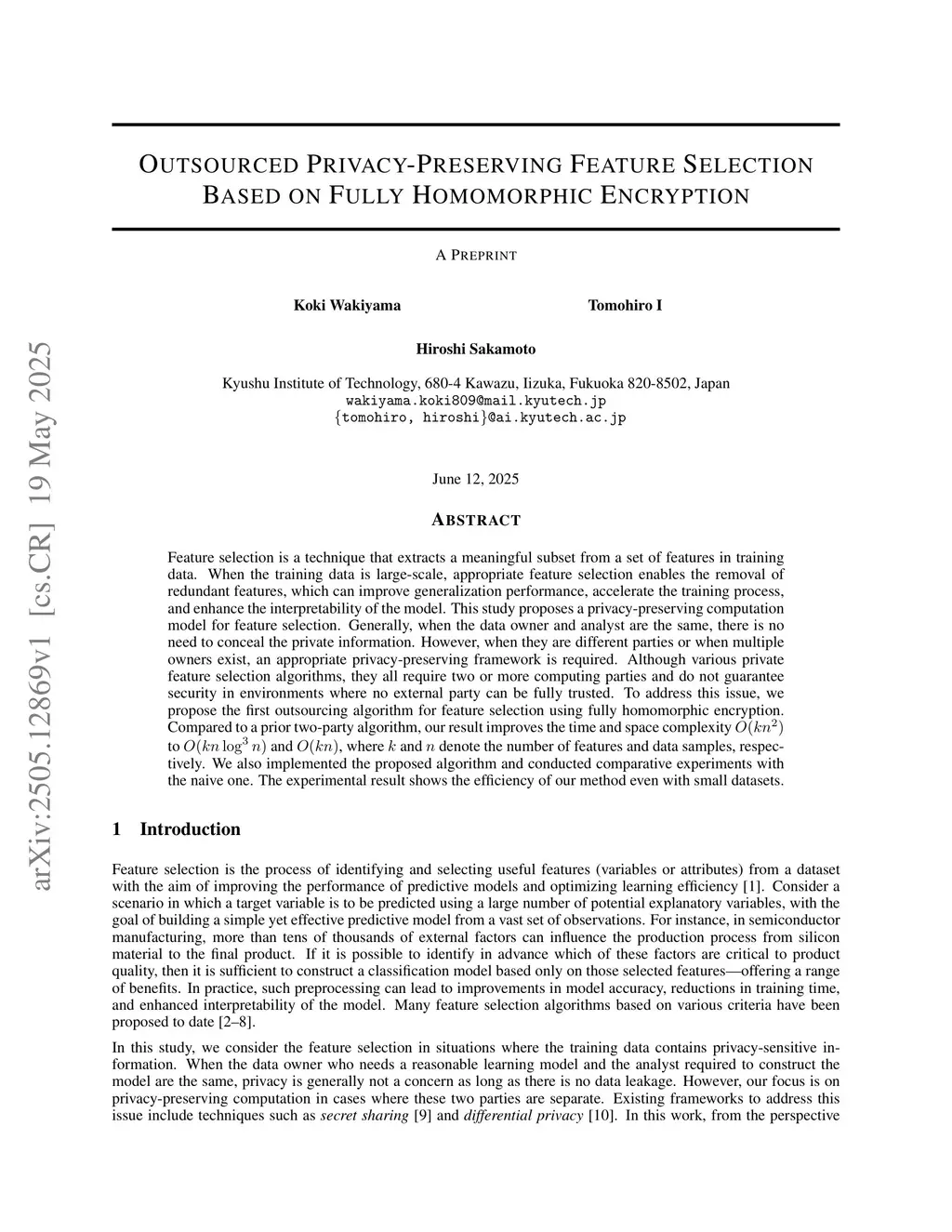 Outsourced Privacy-Preserving Feature Selection Based on Fully Homomorphic Encryption