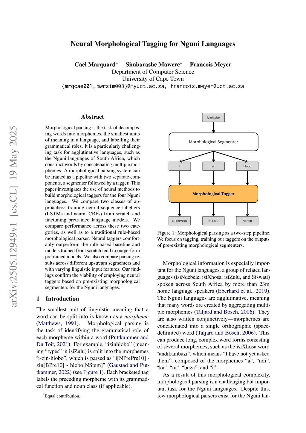 Neural Morphological Tagging for Nguni Languages