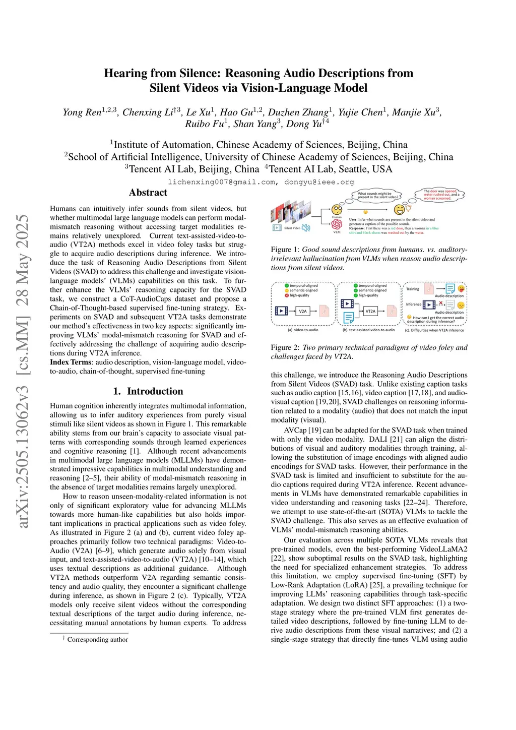 Hearing from Silence: Reasoning Audio Descriptions from Silent Videos via Vision-Language Model