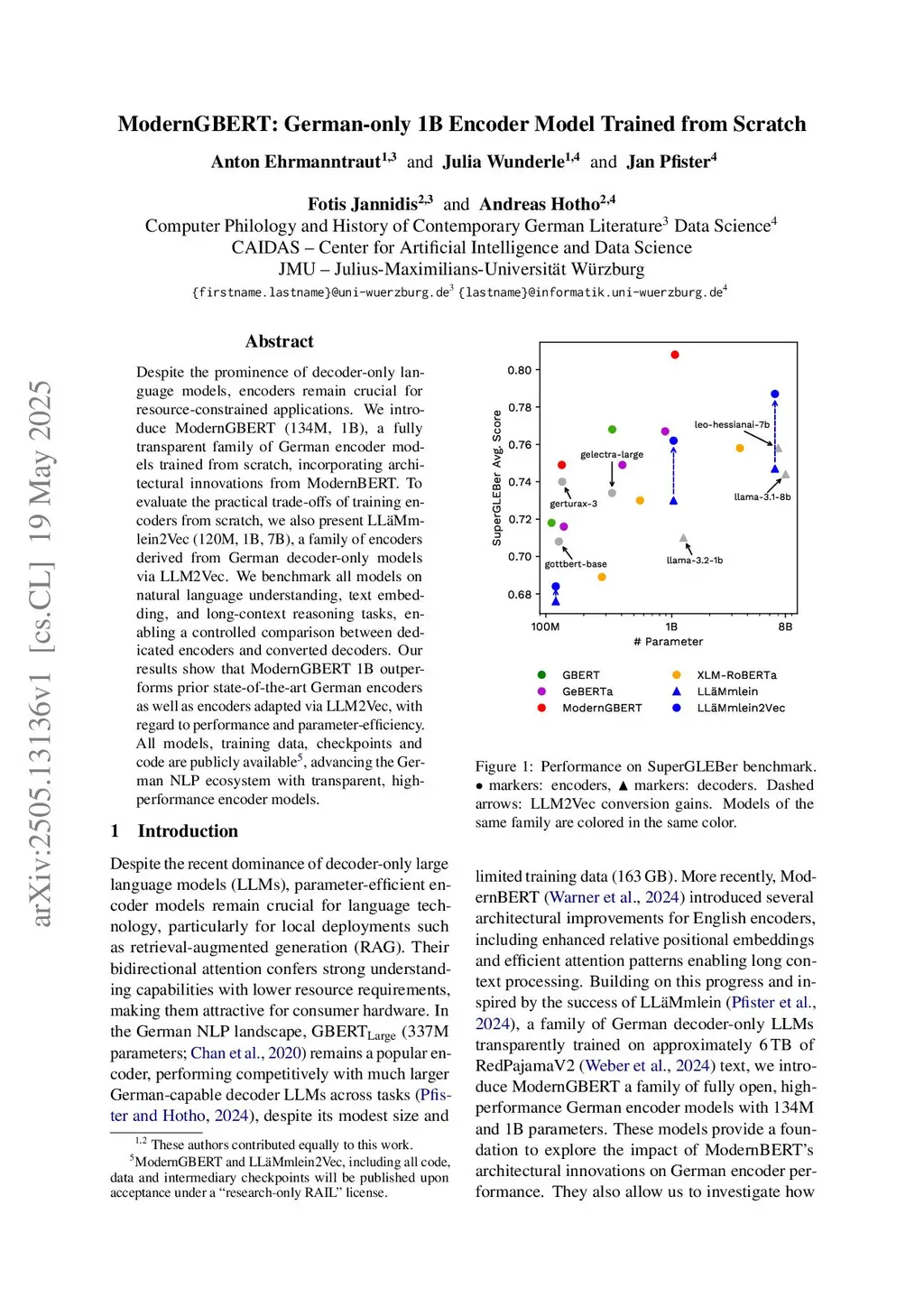 Encoders remain essential for efficient German NLP and NLU scenarios despite the rise of decoder-only LLMs. This work studies two routes to high-quality German encoders under identical data and training constraints: 1) training from scratch and 2) converting decoders via LLM2Vec. We introduce two resources: ModernGBERT (134M, 1B), fully transparent German encoders in the ModernBERT style, and LLäMmleinVec (120M, 1B, 7B), decoder-to-encoder conversions trained with masked next-token prediction, both undergoing a context extension to 8.192 tokens.Across SuperGLEBer, ModernGBERT 1B sets a new state of the art (avg 0.808), surpassing GBERT Large (+4%) and the seven-times larger converted 7B model (0.787). On German MTEB after supervised fine-tuning, ModernGBERT 1B (0.551) approaches the converted 7B model (0.557).We release all models, checkpoints, datasets, and full training records, and introduce an encoder-adapted QA-NIAH evaluation. All in all, our results provide actionable guidance: when parameter efficiency and latency matter, from-scratch encoders dominate. When a pre-trained decoder exists and compute is a limited, conversion offers an effective alternative. ModernGBERT and LLäMmleinVec, including all code, data and intermediary checkpoints are published under a research-only RAIL license.