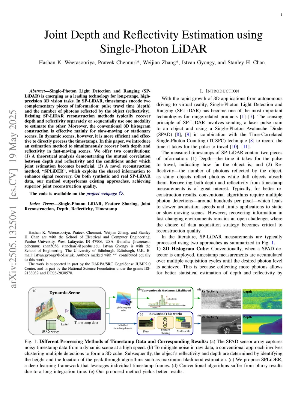 Single-Photon Light Detection and Ranging (SP-LiDAR is emerging as a leading technology for long-range, high-precision 3D vision tasks. In SP-LiDAR, timestamps encode two complementary pieces of information: pulse travel time (depth) and the number of photons reflected by the object (reflectivity). Existing SP-LiDAR reconstruction methods typically recover depth and reflectivity separately or sequentially use one modality to estimate the other. Moreover, the conventional 3D histogram construction is effective mainly for slow-moving or stationary scenes. In dynamic scenes, however, it is more efficient and effective to directly process the timestamps. In this paper, we introduce an estimation method to simultaneously recover both depth and reflectivity in fast-moving scenes. We offer two contributions: (1) A theoretical analysis demonstrating the mutual correlation between depth and reflectivity and the conditions under which joint estimation becomes beneficial. (2) A novel reconstruction method, "SPLiDER", which exploits the shared information to enhance signal recovery. On both synthetic and real SP-LiDAR data, our method outperforms existing approaches, achieving superior joint reconstruction quality.