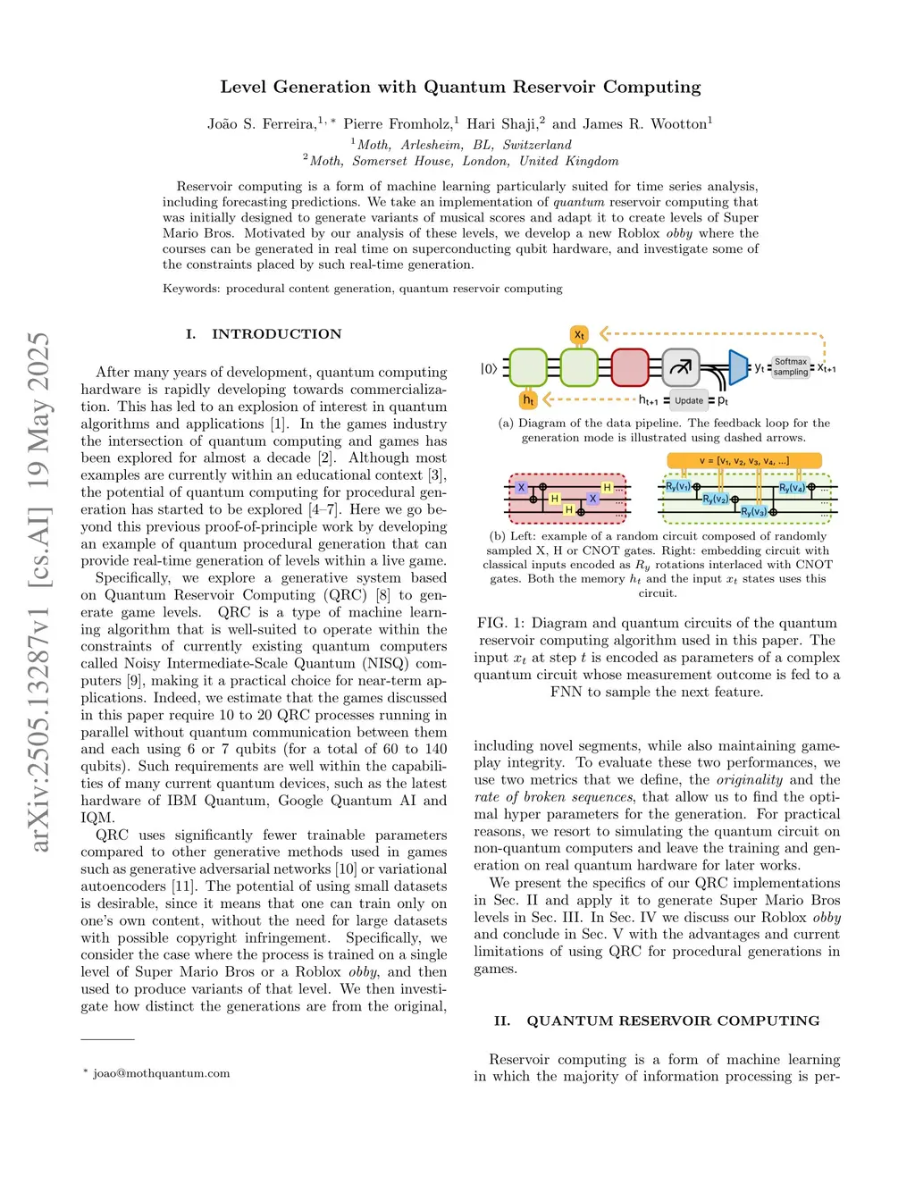 Reservoir computing is a form of machine learning particularly suited for time series analysis, including forecasting predictions. We take an implementation of \emph{quantum} reservoir computing that was initially designed to generate variants of musical scores and adapt it to create levels of Super Mario Bros. Motivated by our analysis of these levels, we develop a new Roblox \textit{obby} where the courses can be generated in real time on superconducting qubit hardware, and investigate some of the constraints placed by such real-time generation.