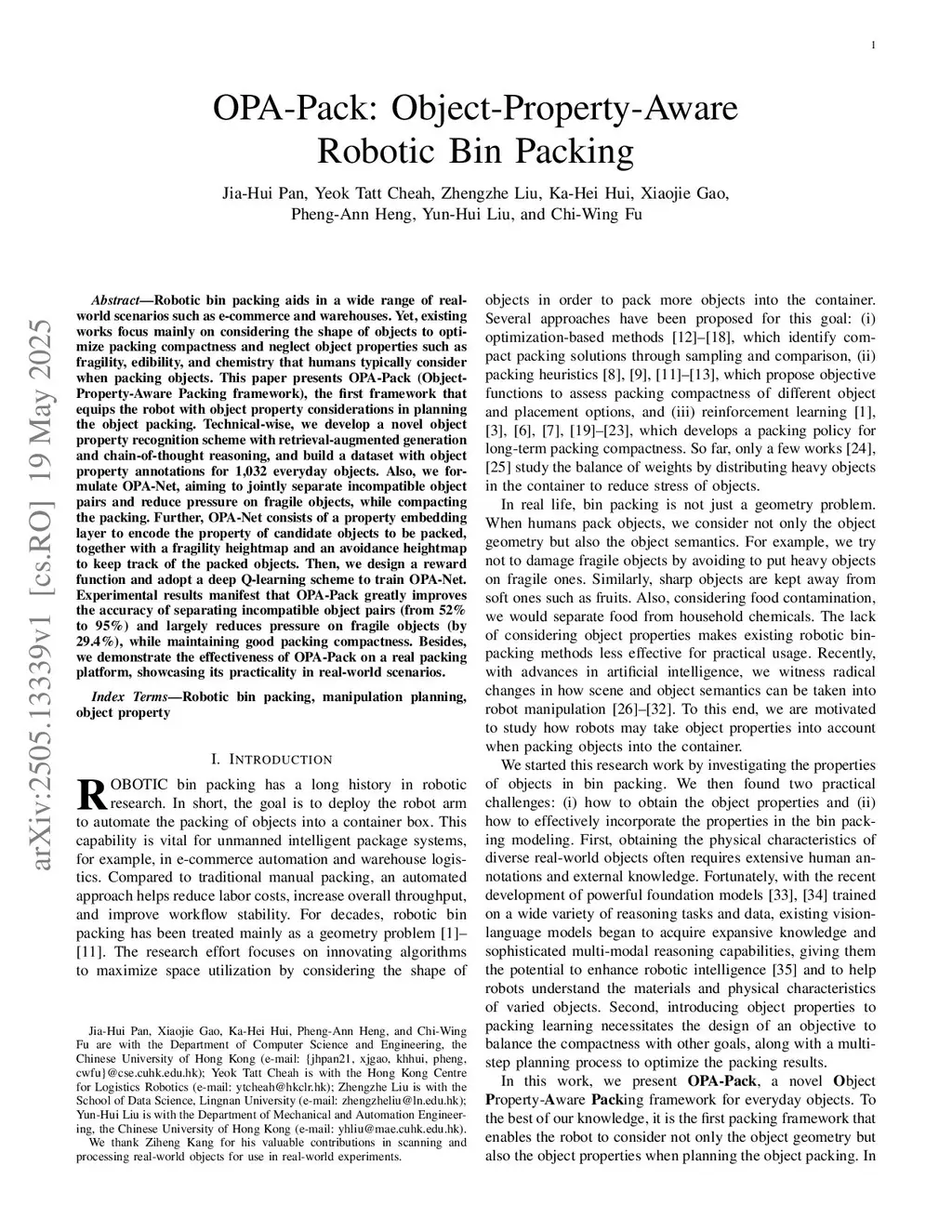 OPA-Pack: Object-Property-Aware Robotic Bin Packing