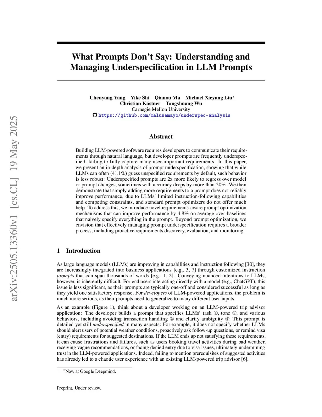 Prompt underspecification is a common challenge when interacting with LLMs. In this paper, we present an in-depth analysis of this problem, showing that while LLMs can often infer unspecified requirements by default (41.1%), such behavior is fragile: Under-specified prompts are 2x as likely to regress across model or prompt changes, sometimes with accuracy drops exceeding 20%. This instability makes it difficult to reliably build LLM applications. Moreover, simply specifying all requirements does not consistently help, as models have limited instruction-following ability and requirements can conflict. Standard prompt optimizers likewise provide little benefit. To address these issues, we propose requirements-aware prompt optimization mechanisms that improve performance by 4.8% on average over baselines. We further advocate for a systematic process of proactive requirements discovery, evaluation, and monitoring to better manage prompt underspecification in practice.