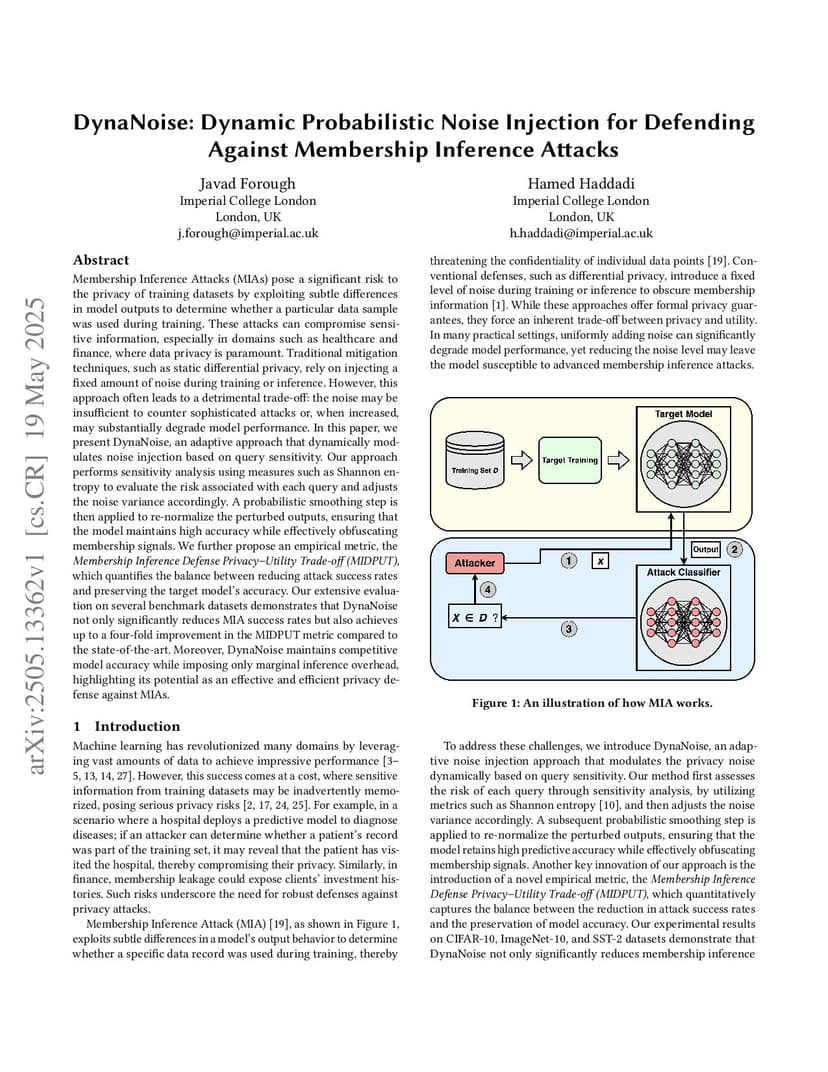 DynaNoise: Dynamic Probabilistic Noise Injection for Defending Against Membership Inference Attacks