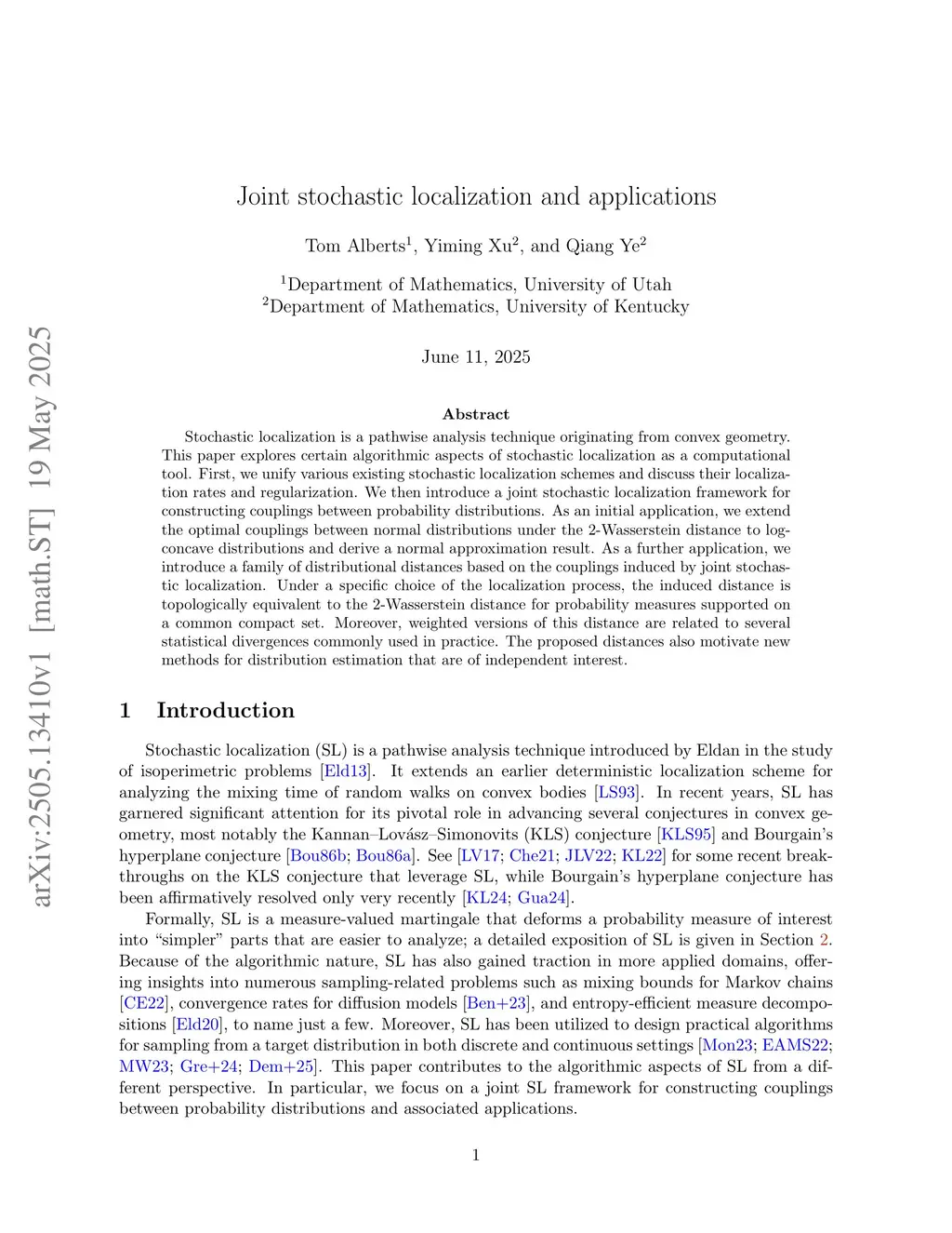 Stochastic localization is a pathwise analysis technique originating from convex geometry. This paper explores certain algorithmic aspects of stochastic localization as a computational tool. First, we unify various existing stochastic localization schemes and discuss their localization rates and regularization. We then introduce a joint stochastic localization framework for constructing couplings between probability distributions. As an initial application, we extend the optimal couplings between normal distributions under the 2-Wasserstein distance to log-concave distributions and derive a normal approximation result. As a further application, we introduce a family of distributional distances based on the couplings induced by joint stochastic localization. Under a specific choice of the localization process, the induced distance is topologically equivalent to the 2-Wasserstein distance for probability measures supported on a common compact set. Moreover, weighted versions of this distance are related to several statistical divergences commonly used in practice. The proposed distances also motivate new methods for distribution estimation that are of independent interest.