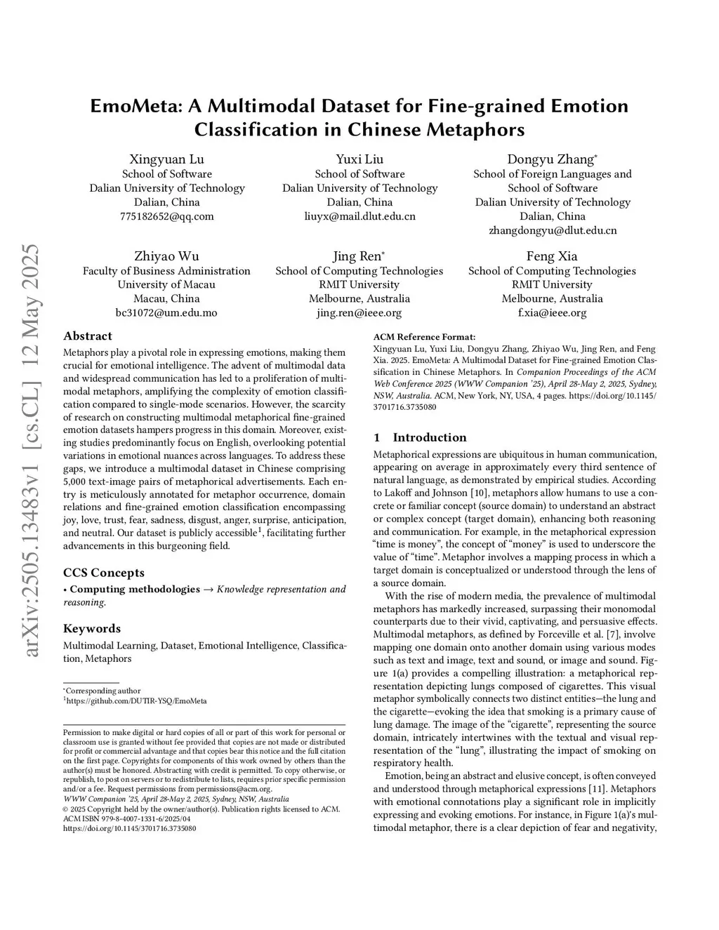 EmoMeta: A Multimodal Dataset for Fine-grained Emotion Classification in Chinese Metaphors