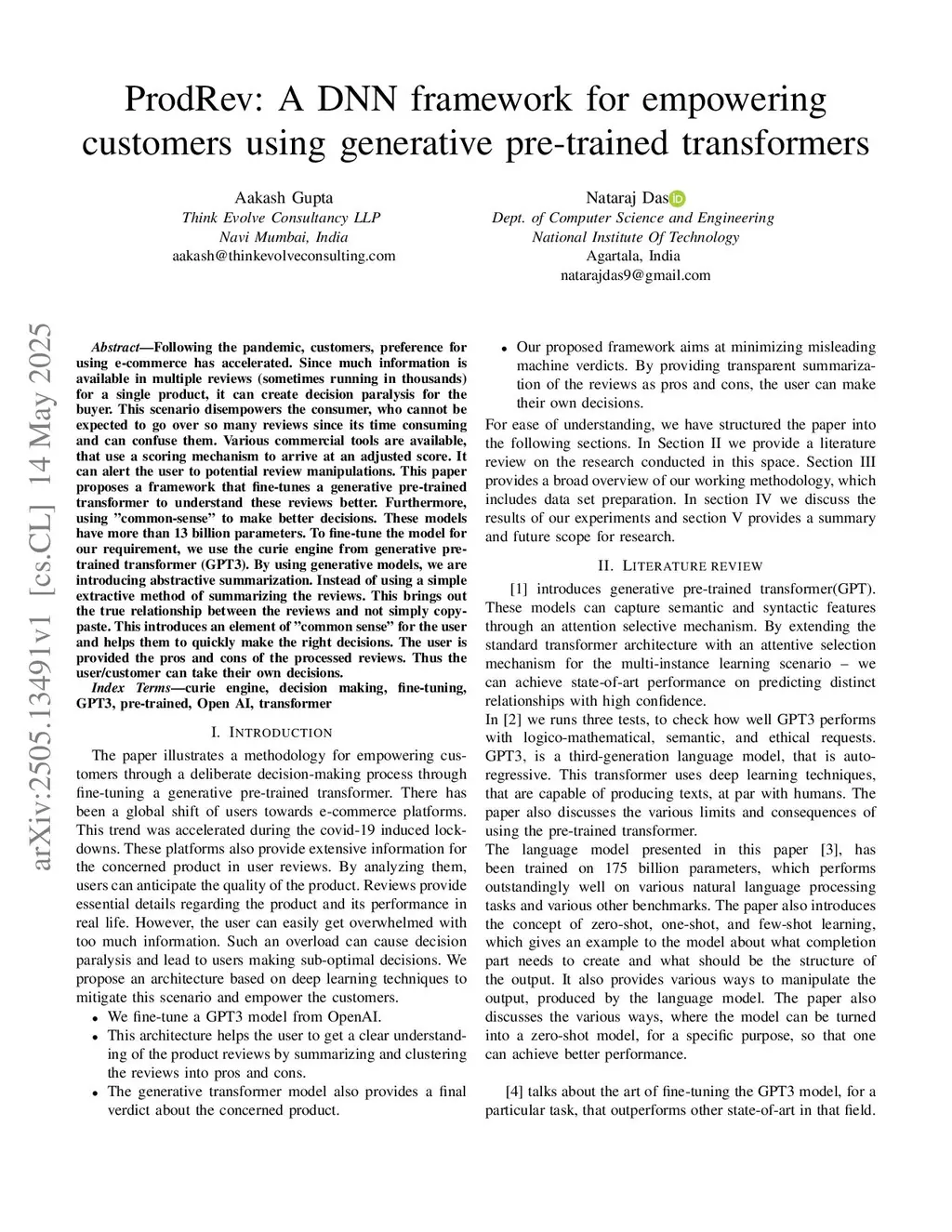 ProdRev: A DNN framework for empowering customers using generative pre-trained transformers