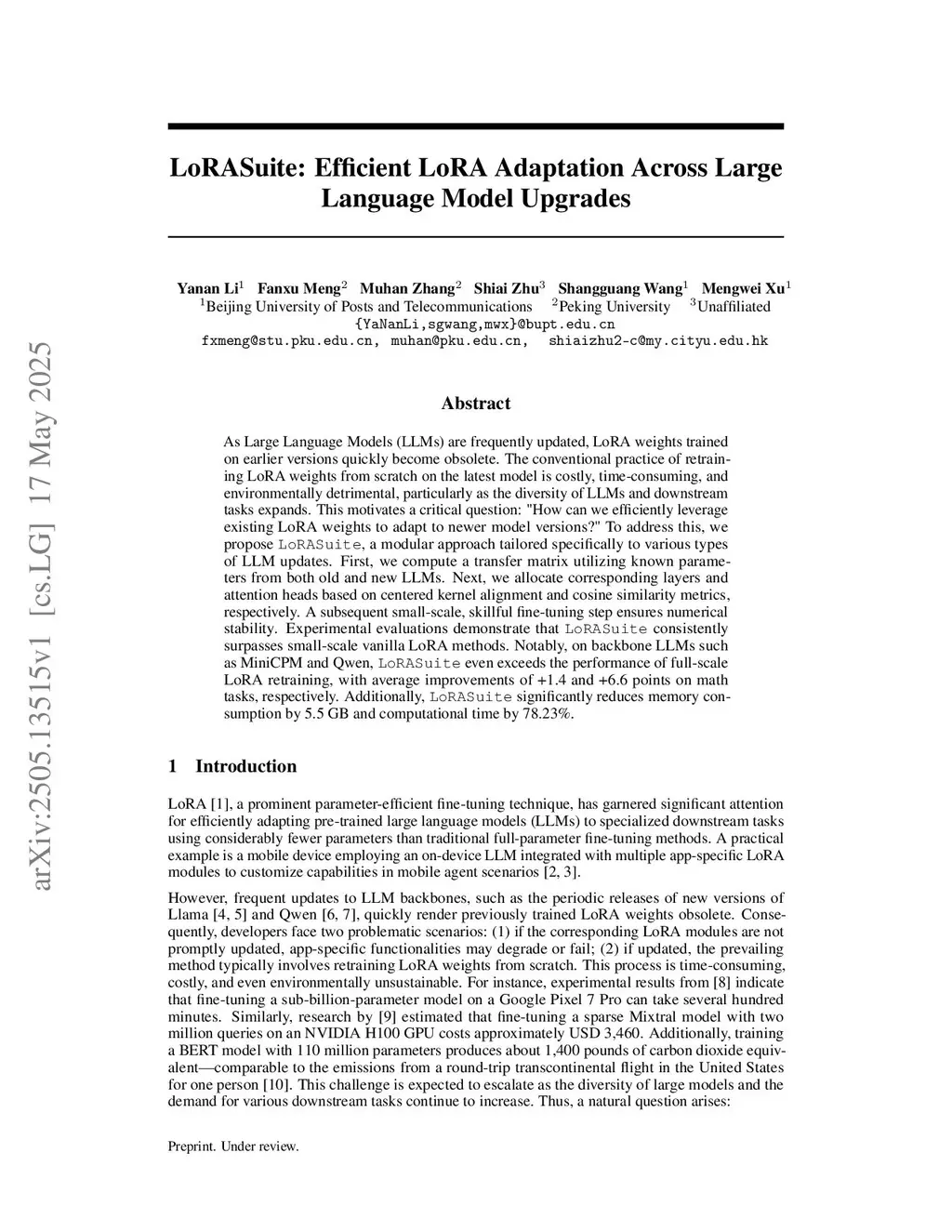 LoRASuite: Efficient LoRA Adaptation Across Large Language Model Upgrades