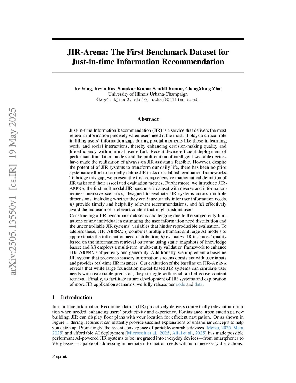 JIR-Arena: The First Benchmark Dataset for Just-in-time Information Recommendation