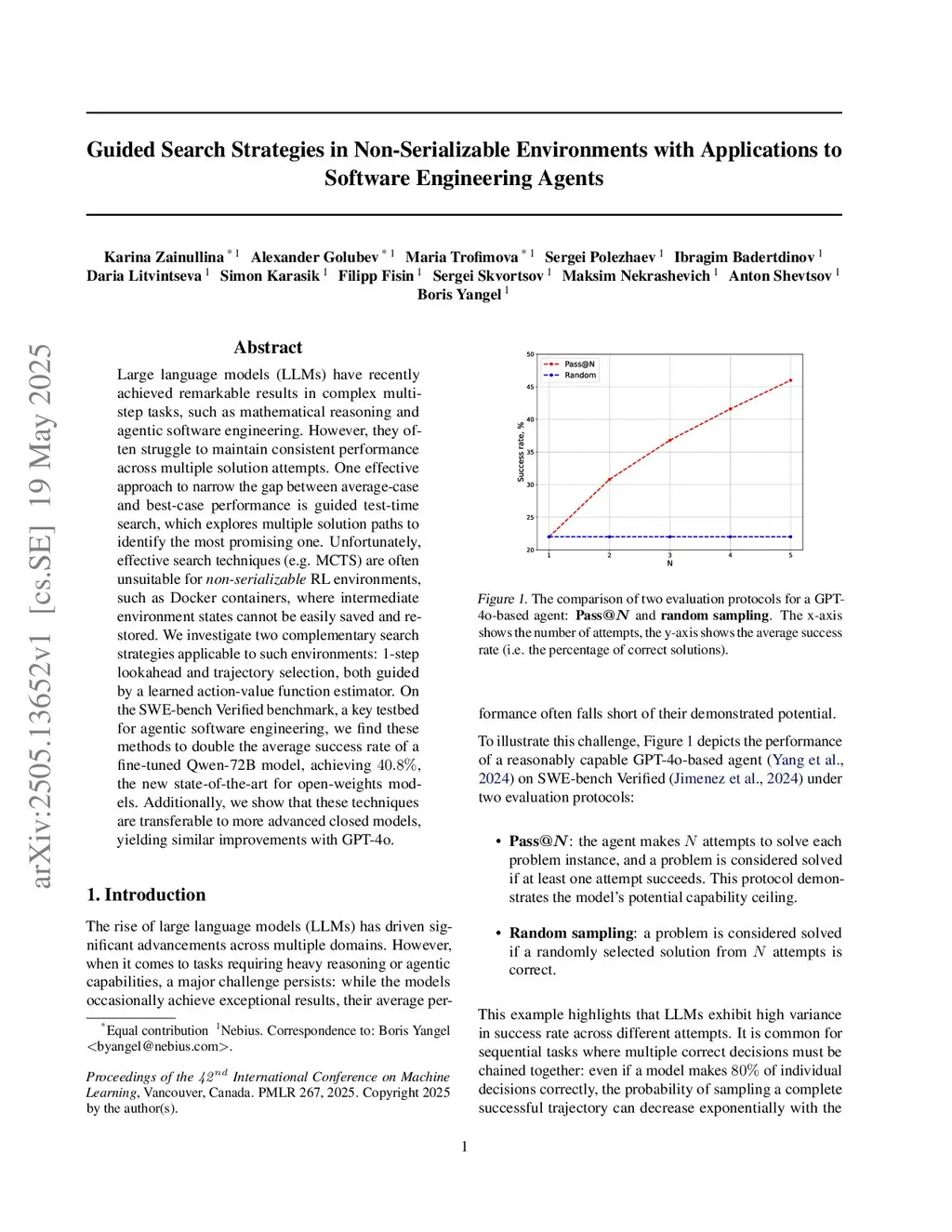 Guided Search Strategies in Non-Serializable Environments with Applications to Software Engineering Agents