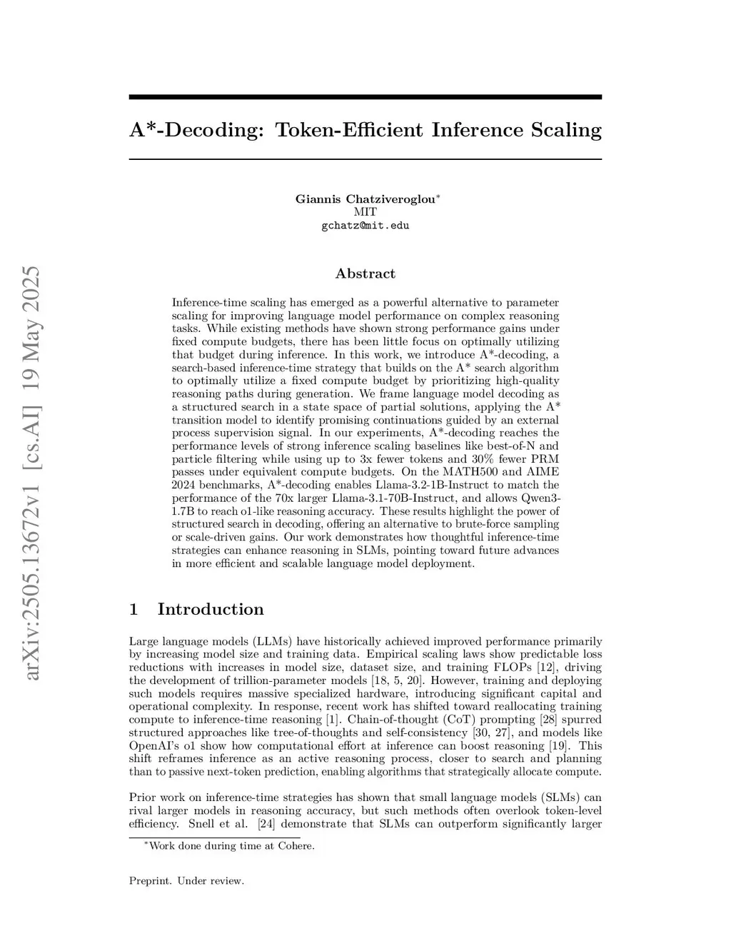 Inference-time scaling has emerged as a powerful alternative to parameter scaling for improving language model performance on complex reasoning tasks. While existing methods have shown strong performance gains under fixed compute budgets, there has been little focus on optimally utilizing that budget during inference. In this work, we introduce A*-decoding, a search-based inference-time strategy that builds on the A* search algorithm to optimally utilize a fixed compute budget by prioritizing high-quality reasoning paths during generation. We frame language model decoding as a structured search in a state space of partial solutions, applying the A* transition model to identify promising continuations guided by an external process supervision signal. In our experiments, A*-decoding reaches the performance levels of strong inference scaling baselines like best-of-N and particle filtering while using up to 3x fewer tokens and 30% fewer PRM passes under equivalent compute budgets. On the MATH500 and AIME 2024 benchmarks, A*-decoding enables Llama-3.2-1B-Instruct to match the performance of the 70x larger Llama-3.1-70B-Instruct, and allows Qwen3-1.7B to reach o1-like reasoning accuracy. These results highlight the power of structured search in decoding, offering an alternative to brute-force sampling or scale-driven gains. Our work demonstrates how thoughtful inference-time strategies can enhance reasoning in SLMs, pointing toward future advances in more efficient and scalable language model deployment.
