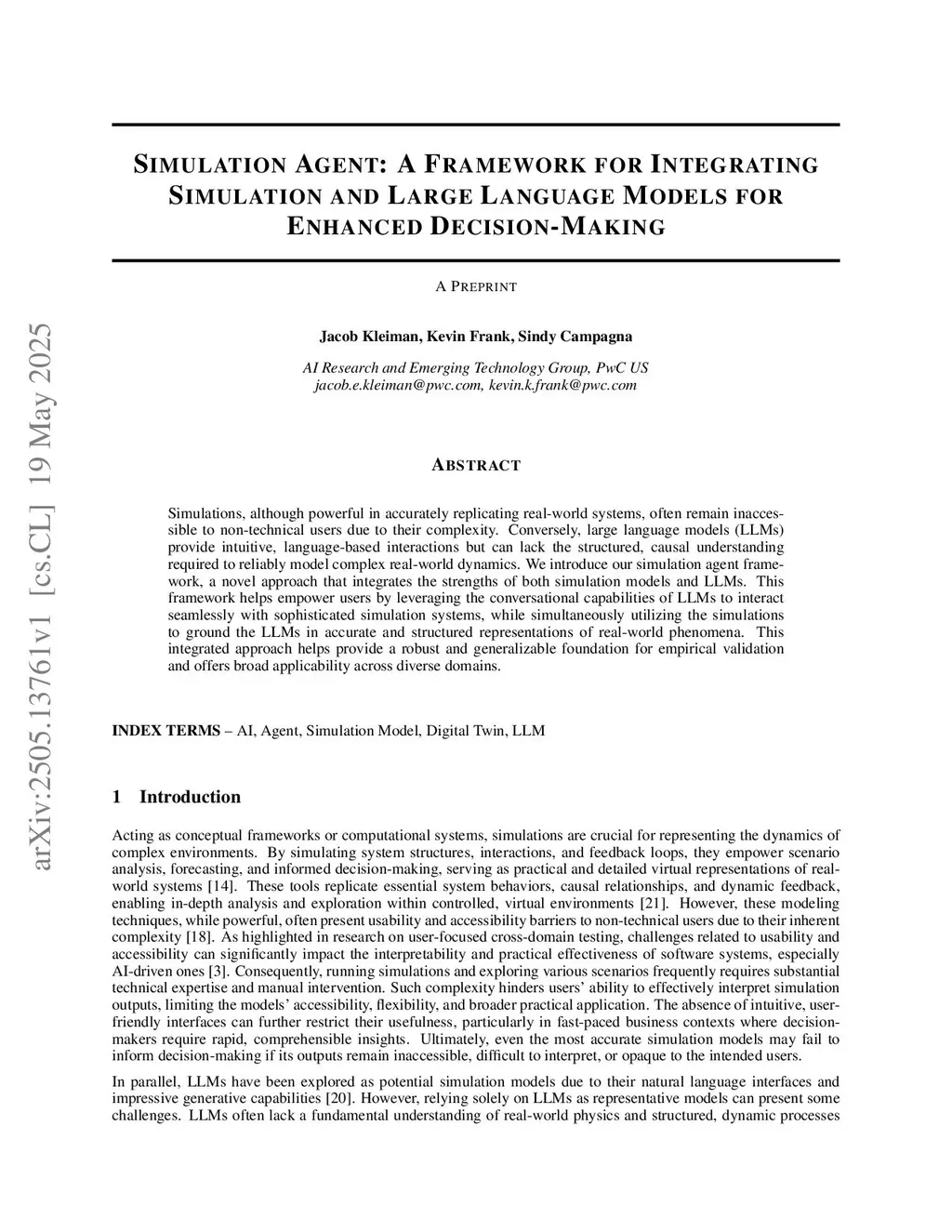 Simulation Agent: A Framework for Integrating Simulation and Large Language Models for Enhanced Decision-Making