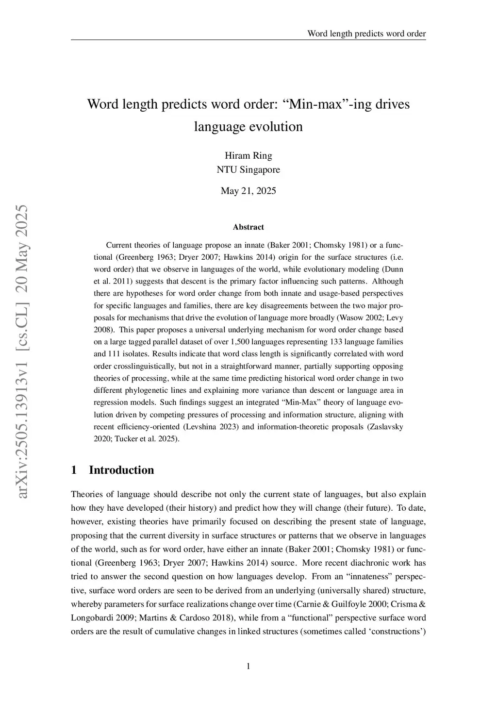 Word length predicts word order: "Min-max"-ing drives language evolution