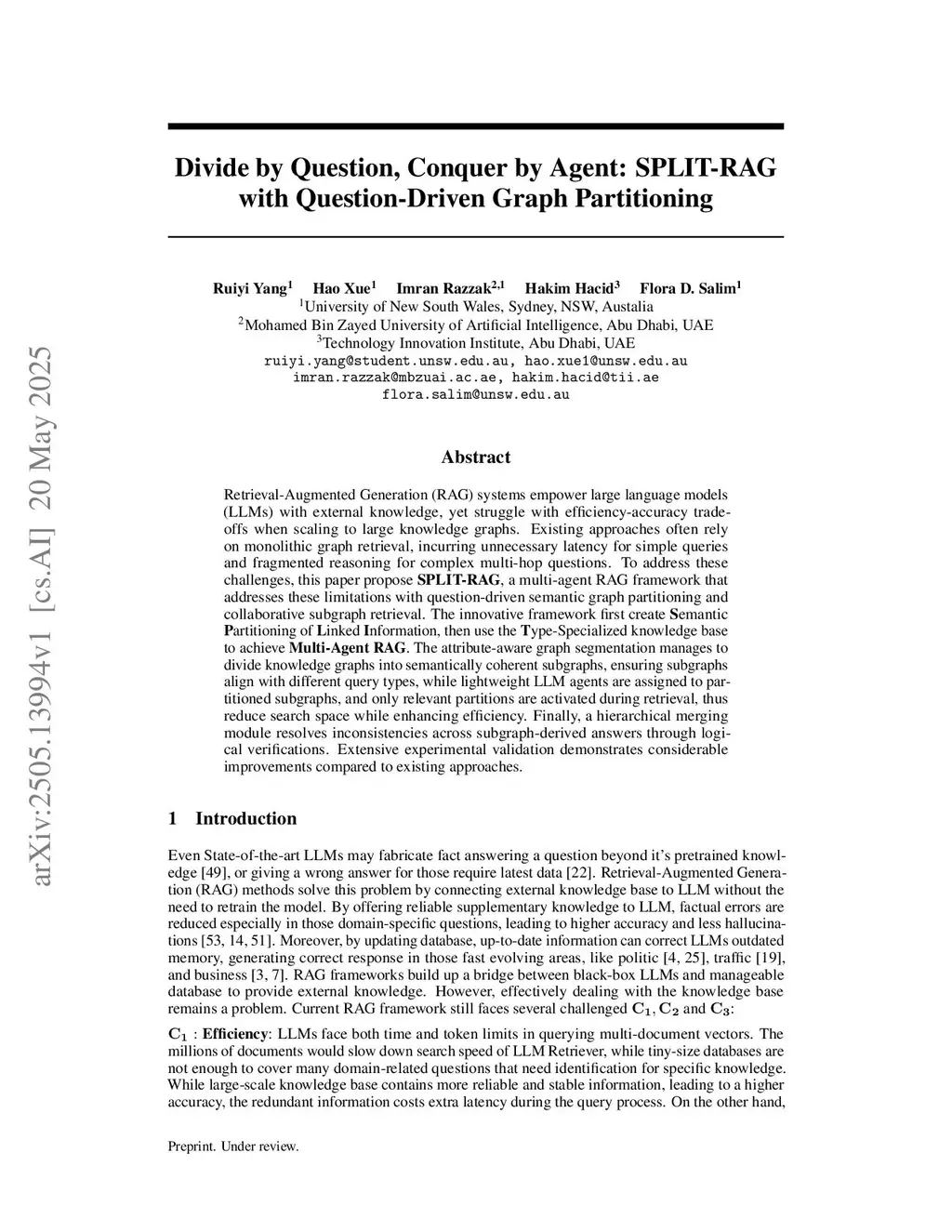 Divide by Question, Conquer by Agent: SPLIT-RAG with Question-Driven Graph Partitioning