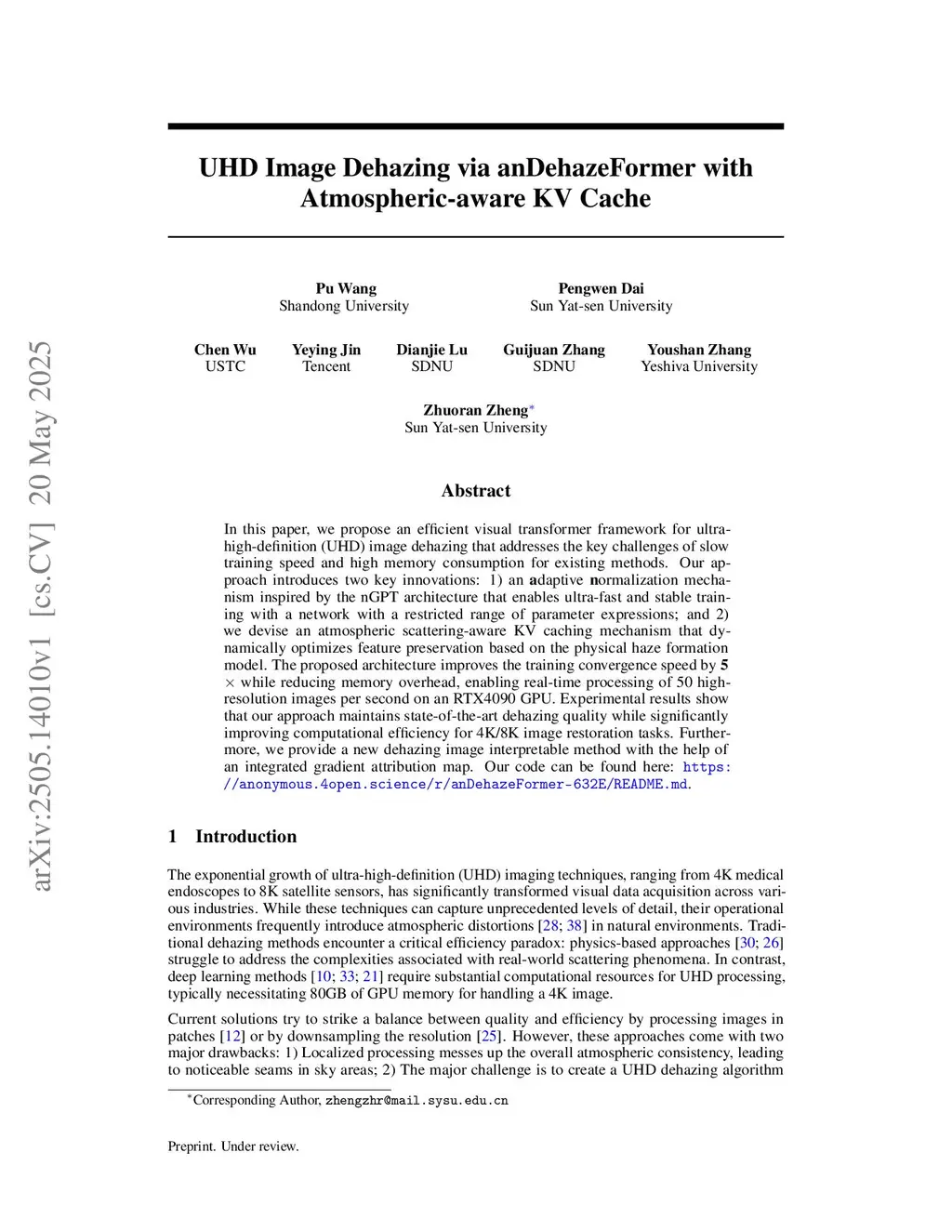 UHD Image Dehazing via anDehazeFormer with Atmospheric-aware KV Cache