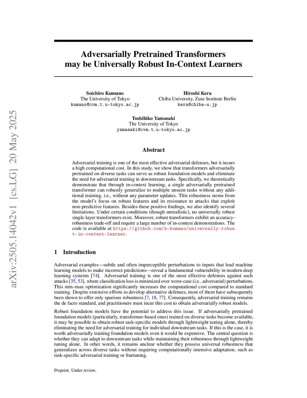 Adversarially Pretrained Transformers May Be Universally Robust In-Context Learners