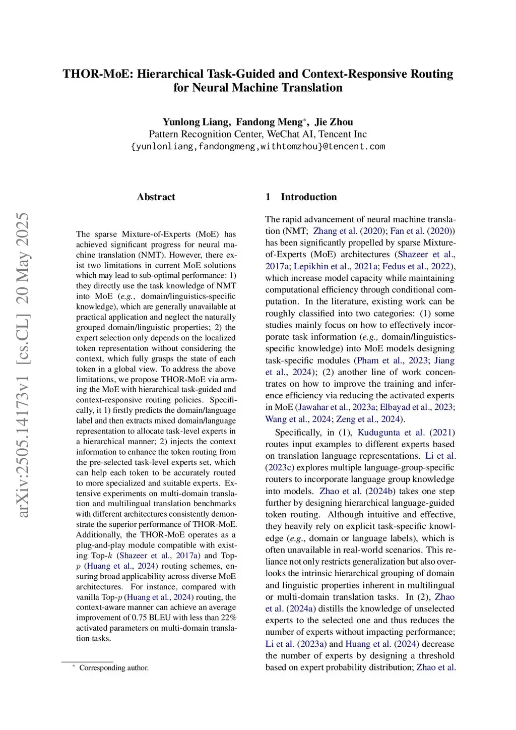 THOR-MoE: Hierarchical Task-Guided and Context-Responsive Routing for Neural Machine Translation