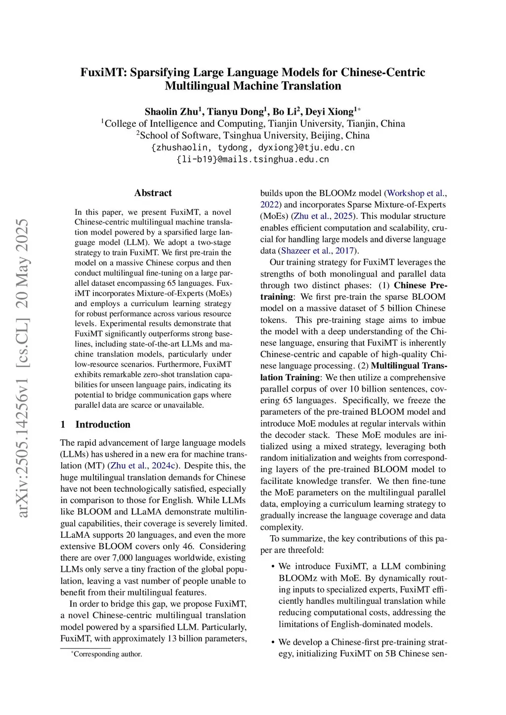 FuxiMT: Sparsifying Large Language Models for Chinese-Centric Multilingual Machine Translation