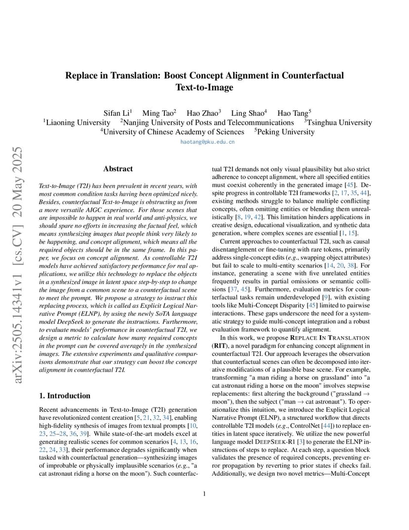 Text-to-Image (T2I) has been prevalent in recent years, with most common condition tasks having been optimized nicely. Besides, counterfactual Text-to-Image is obstructing us from a more versatile AIGC experience. For those scenes that are impossible to happen in real world and anti-physics, we should spare no efforts in increasing the factual feel, which means synthesizing images that people think very likely to be happening, and concept alignment, which means all the required objects should be in the same frame. In this paper, we focus on concept alignment. As controllable T2I models have achieved satisfactory performance for real applications, we utilize this technology to replace the objects in a synthesized image in latent space step-by-step to change the image from a common scene to a counterfactual scene to meet the prompt. We propose a strategy to instruct this replacing process, which is called as Explicit Logical Narrative Prompt (ELNP), by using the newly SoTA language model DeepSeek to generate the instructions. Furthermore, to evaluate models' performance in counterfactual T2I, we design a metric to calculate how many required concepts in the prompt can be covered averagely in the synthesized images. The extensive experiments and qualitative comparisons demonstrate that our strategy can boost the concept alignment in counterfactual T2I.