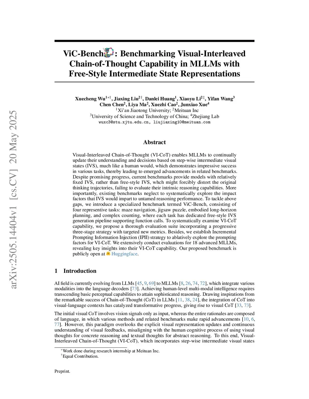 ViC-Bench: Benchmarking Visual-Interleaved Chain-of-Thought Capability in MLLMs with Free-Style Intermediate State Representations