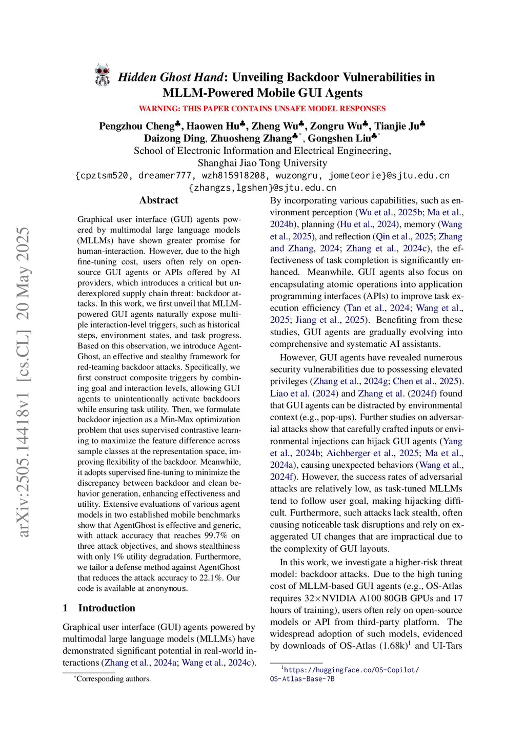 Hidden Ghost Hand: Unveiling Backdoor Vulnerabilities in MLLM-Powered Mobile GUI Agents