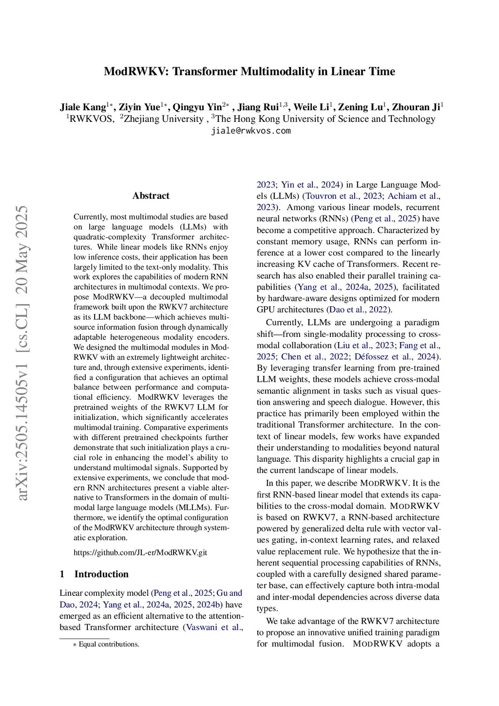 ModRWKV: Transformer Multimodality in Linear Time