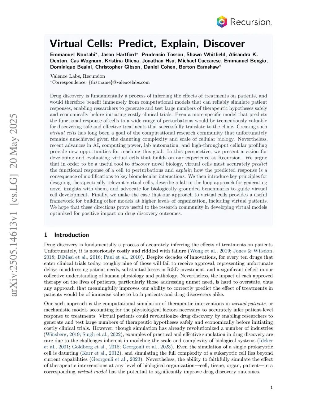 Drug discovery is fundamentally a process of inferring the effects of treatments on patients, and would therefore benefit immensely from computational models that can reliably simulate patient responses, enabling researchers to generate and test large numbers of therapeutic hypotheses safely and economically before initiating costly clinical trials. Even a more specific model that predicts the functional response of cells to a wide range of perturbations would be tremendously valuable for discovering safe and effective treatments that successfully translate to the clinic. Creating such virtual cells has long been a goal of the computational research community that unfortunately remains unachieved given the daunting complexity and scale of cellular biology. Nevertheless, recent advances in AI, computing power, lab automation, and high-throughput cellular profiling provide new opportunities for reaching this goal. In this perspective, we present a vision for developing and evaluating virtual cells that builds on our experience at Recursion. We argue that in order to be a useful tool to discover novel biology, virtual cells must accurately predict the functional response of a cell to perturbations and explain how the predicted response is a consequence of modifications to key biomolecular interactions. We then introduce key principles for designing therapeutically-relevant virtual cells, describe a lab-in-the-loop approach for generating novel insights with them, and advocate for biologically-grounded benchmarks to guide virtual cell development. Finally, we make the case that our approach to virtual cells provides a useful framework for building other models at higher levels of organization, including virtual patients. We hope that these directions prove useful to the research community in developing virtual models optimized for positive impact on drug discovery outcomes.