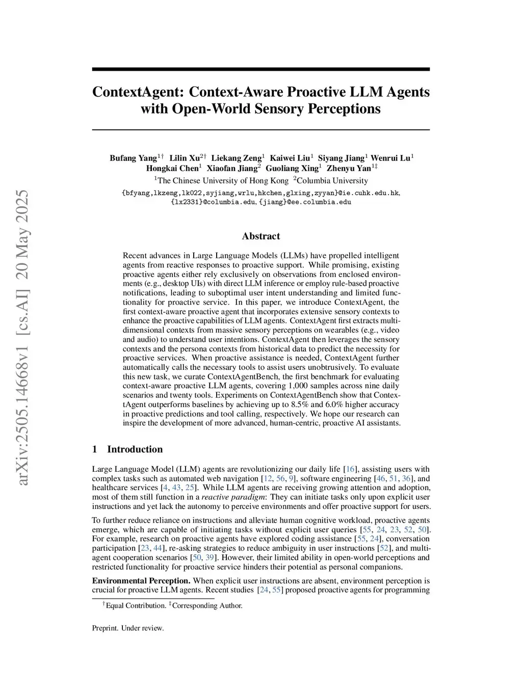 ContextAgent: Context-Aware Proactive LLM Agents with Open-World Sensory Perceptions