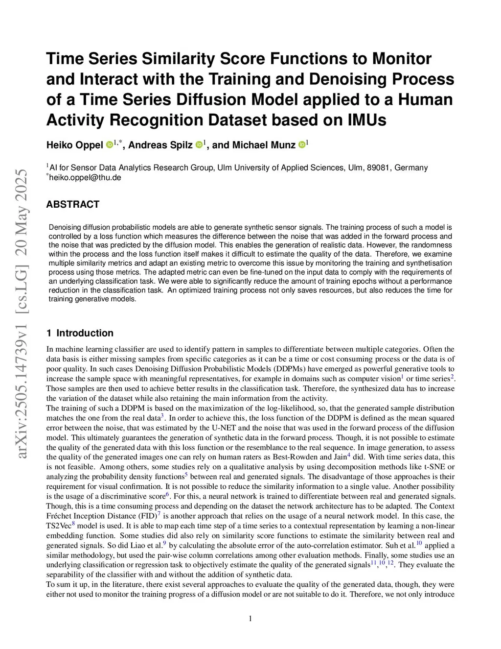 Denoising diffusion probabilistic models are able to generate synthetic sensor signals. The training process of such a model is controlled by a loss function which measures the difference between the noise that was added in the forward process and the noise that was predicted by the diffusion model. This enables the generation of realistic data. However, the randomness within the process and the loss function itself makes it difficult to estimate the quality of the data. Therefore, we examine multiple similarity metrics and adapt an existing metric to overcome this issue by monitoring the training and synthetisation process using those metrics. The adapted metric can even be fine-tuned on the input data to comply with the requirements of an underlying classification task. We were able to significantly reduce the amount of training epochs without a performance reduction in the classification task. An optimized training process not only saves resources, but also reduces the time for training generative models.