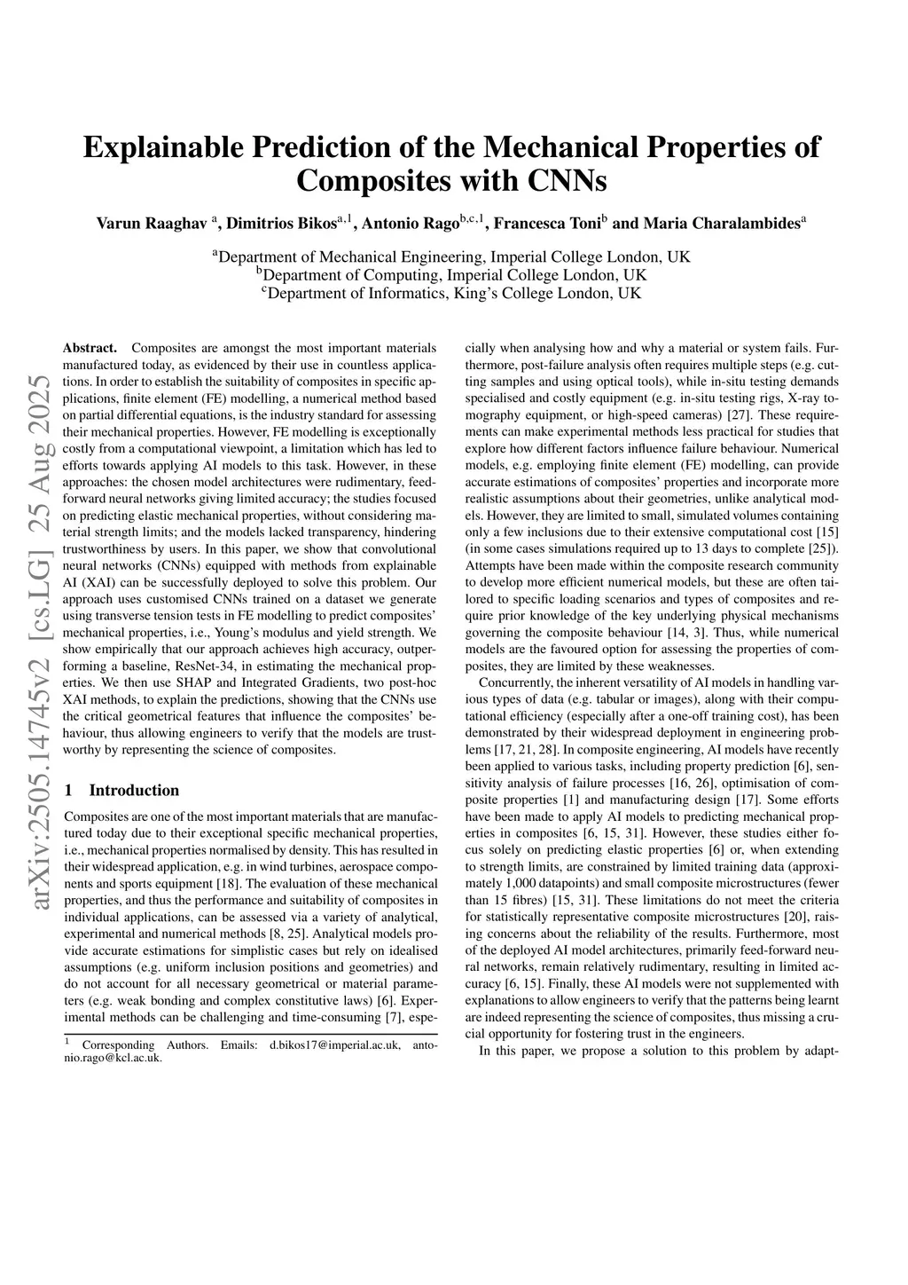 Composites are amongst the most important materials manufactured today, as evidenced by their use in countless applications. In order to establish the suitability of composites in specific applications, finite element (FE) modelling, a numerical method based on partial differential equations, is the industry standard for assessing their mechanical properties. However, FE modelling is exceptionally costly from a computational viewpoint, a limitation which has led to efforts towards applying AI models to this task. However, in these approaches: the chosen model architectures were rudimentary, feed-forward neural networks giving limited accuracy; the studies focused on predicting elastic mechanical properties, without considering material strength limits; and the models lacked transparency, hindering trustworthiness by users. In this paper, we show that convolutional neural networks (CNNs) equipped with methods from explainable AI (XAI) can be successfully deployed to solve this problem. Our approach uses customised CNNs trained on a dataset we generate using transverse tension tests in FE modelling to predict composites' mechanical properties, i.e., Young's modulus and yield strength. We show empirically that our approach achieves high accuracy, outperforming a baseline, ResNet-34, in estimating the mechanical properties. We then use SHAP and Integrated Gradients, two post-hoc XAI methods, to explain the predictions, showing that the CNNs use the critical geometrical features that influence the composites' behaviour, thus allowing engineers to verify that the models are trustworthy by representing the science of composites.