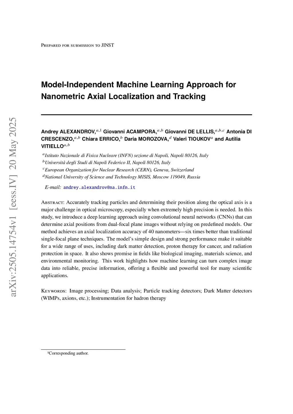 Accurately tracking particles and determining their coordinate along the optical axis is a major challenge in optical microscopy, especially when extremely high precision is needed. In this study, we introduce a deep learning approach using convolutional neural networks (CNNs) that can determine axial coordinates from dual-focal-plane images without relying on predefined models. Our method achieves an axial localization precision of 40 nanometers-six times better than traditional single-focal-plane techniques. The model's simple design and strong performance make it suitable for a wide range of uses, including dark matter detection, proton therapy for cancer, and radiation protection in space. It also shows promise in fields like biological imaging, materials science, and environmental monitoring. This work highlights how machine learning can turn complex image data into reliable, precise information, offering a flexible and powerful tool for many scientific applications.