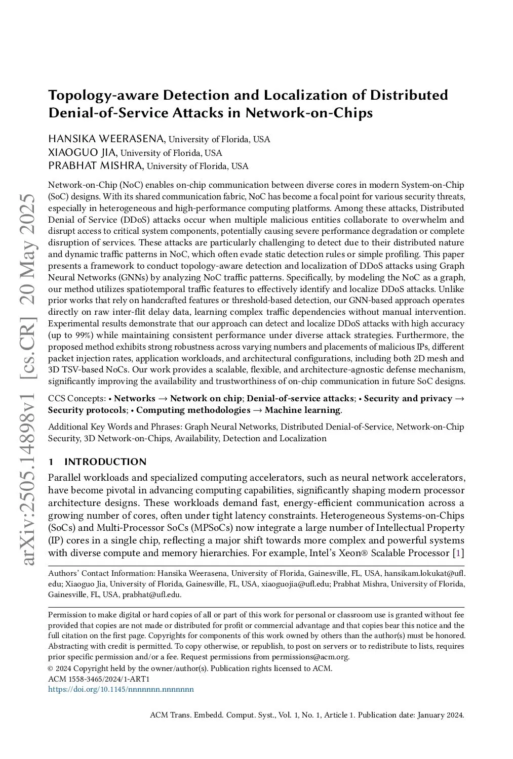 Topology-aware Detection and Localization of Distributed Denial-of-Service Attacks in Network-on-Chips