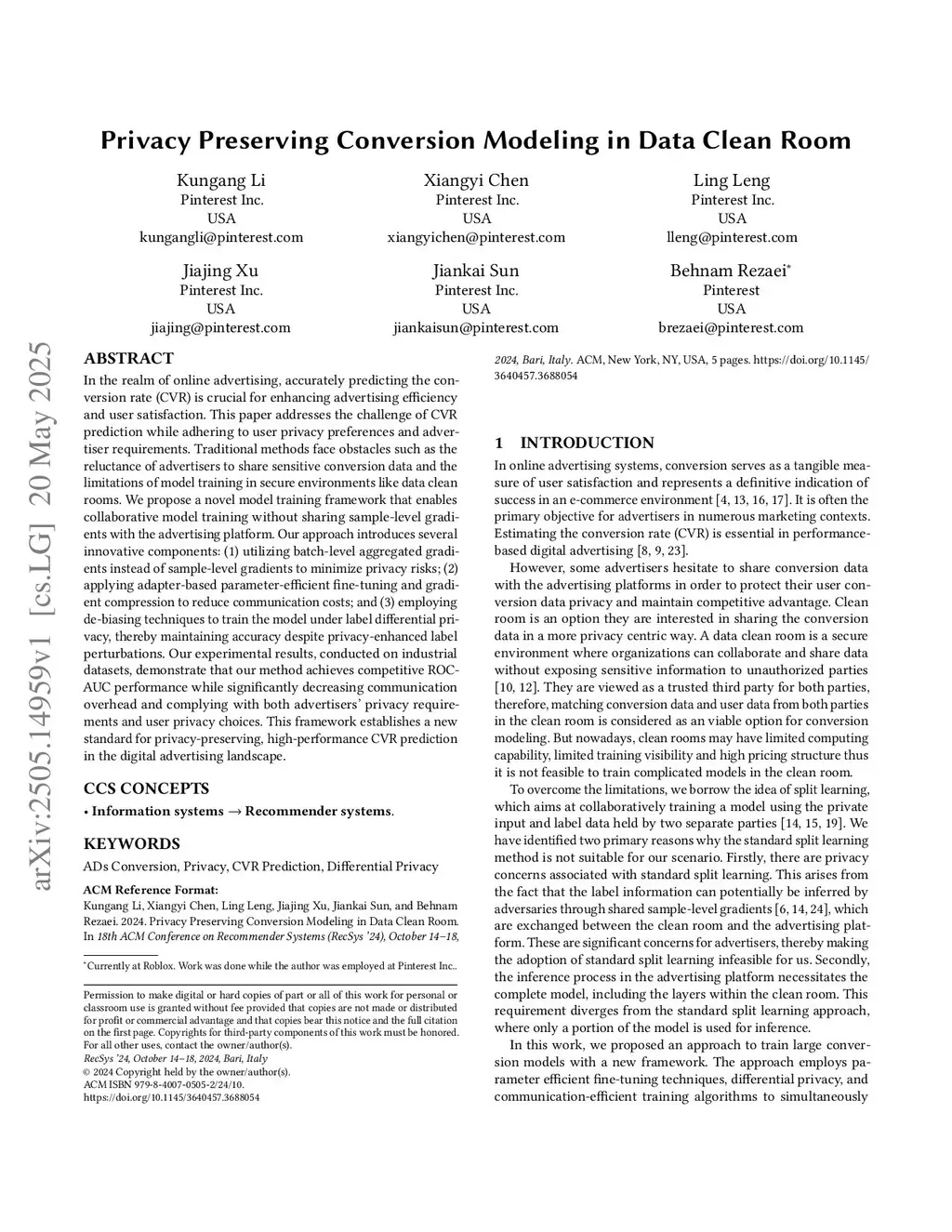 Privacy Preserving Conversion Modeling in Data Clean Room