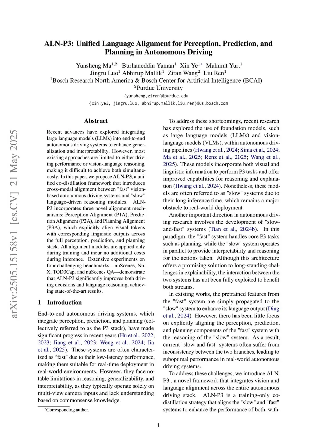 ALN-P3: Unified Language Alignment for Perception, Prediction, and Planning in Autonomous Driving