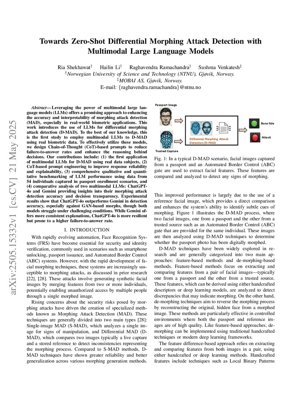 Leveraging the power of multimodal large language models (LLMs) offers a promising approach to enhancing the accuracy and interpretability of morphing attack detection (MAD), especially in real-world biometric applications. This work introduces the use of LLMs for differential morphing attack detection (D-MAD). To the best of our knowledge, this is the first study to employ multimodal LLMs to D-MAD using real biometric data. To effectively utilize these models, we design Chain-of-Thought (CoT)-based prompts to reduce failure-to-answer rates and enhance the reasoning behind decisions. Our contributions include: (1) the first application of multimodal LLMs for D-MAD using real data subjects, (2) CoT-based prompt engineering to improve response reliability and explainability, (3) comprehensive qualitative and quantitative benchmarking of LLM performance using data from 54 individuals captured in passport enrollment scenarios, and (4) comparative analysis of two multimodal LLMs: ChatGPT-4o and Gemini providing insights into their morphing attack detection accuracy and decision transparency. Experimental results show that ChatGPT-4o outperforms Gemini in detection accuracy, especially against GAN-based morphs, though both models struggle under challenging conditions. While Gemini offers more consistent explanations, ChatGPT-4o is more resilient but prone to a higher failure-to-answer rate.