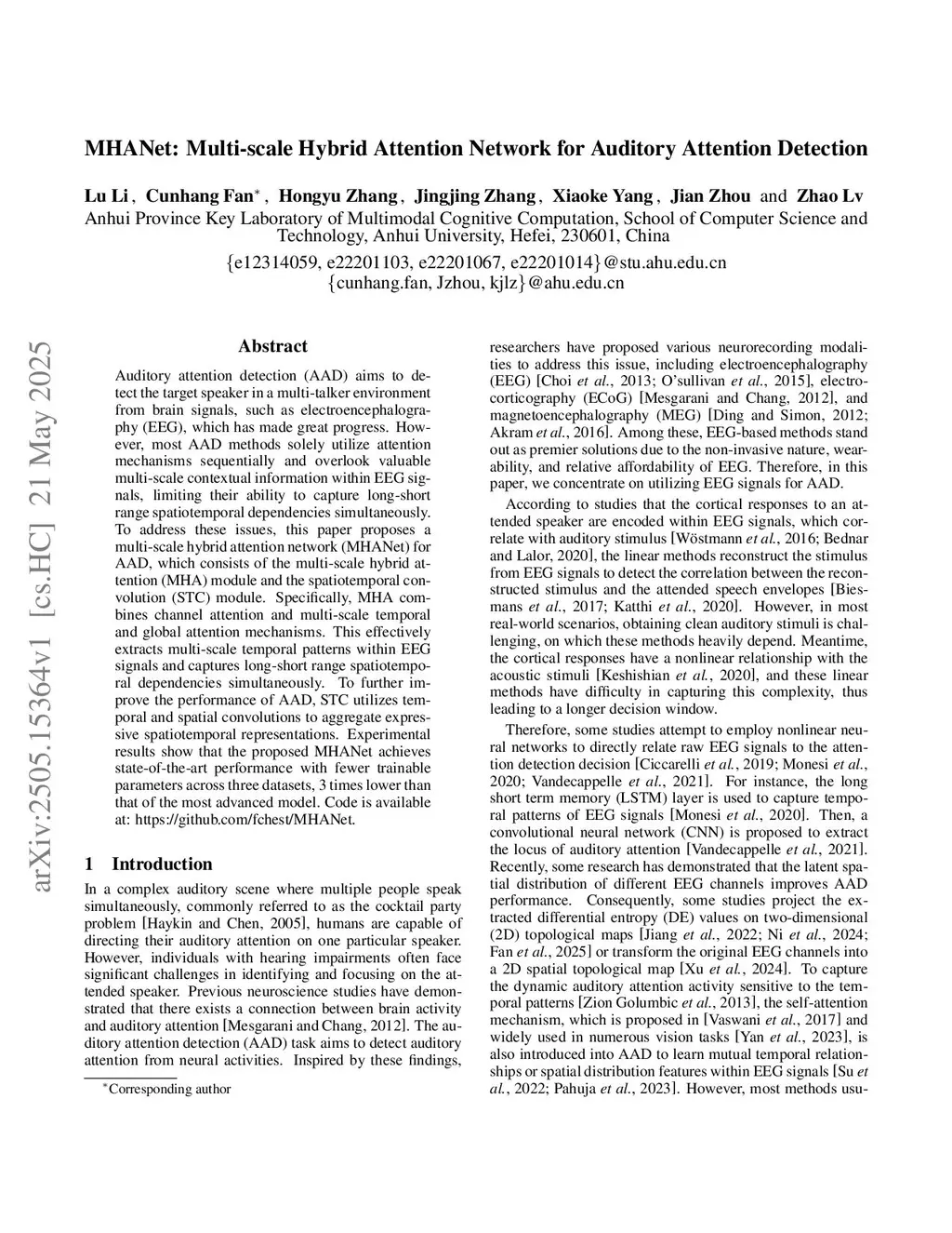 MHANet: Multi-scale Hybrid Attention Network for Auditory Attention Detection