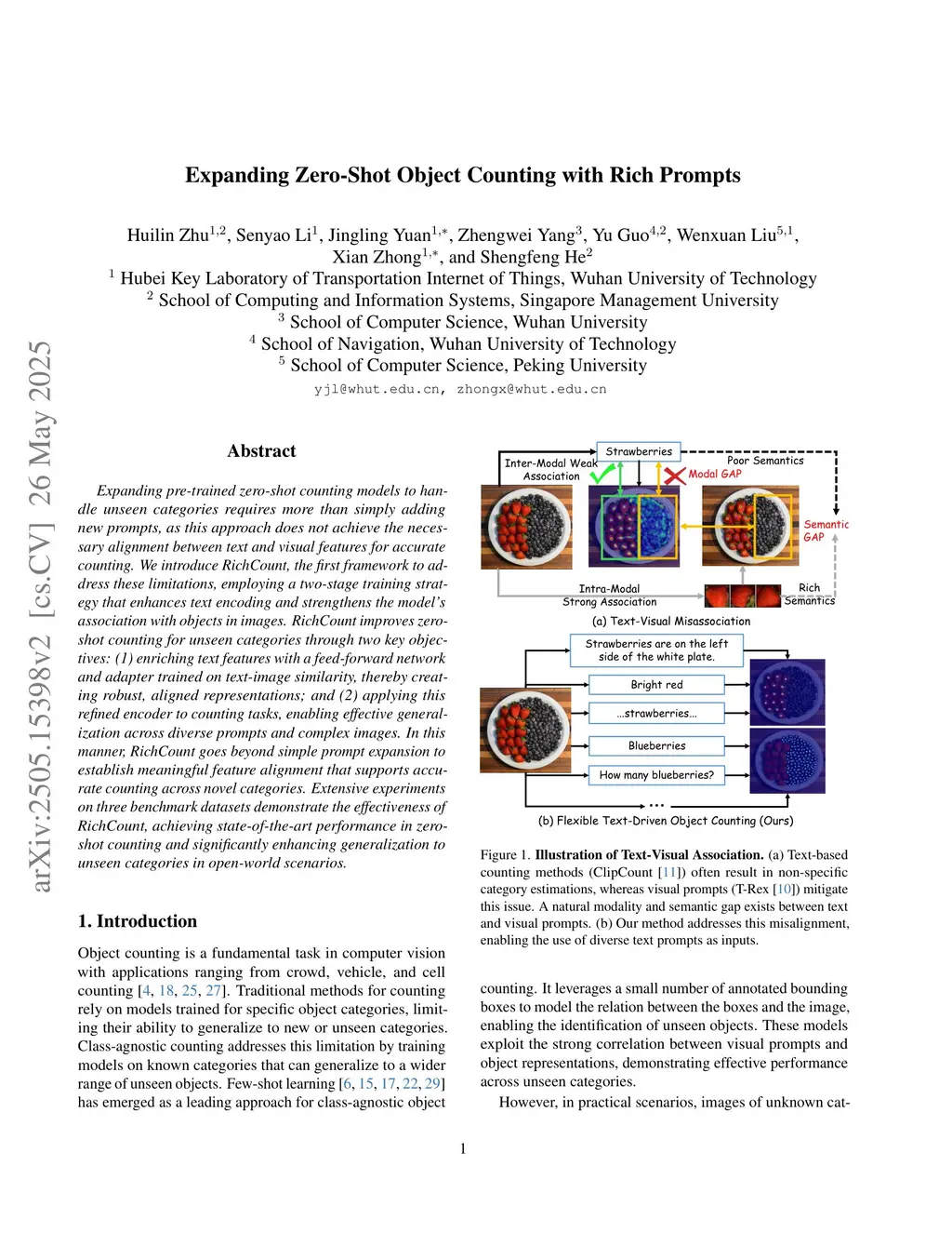 Expanding pre-trained zero-shot counting models to handle unseen categories requires more than simply adding new prompts, as this approach does not achieve the necessary alignment between text and visual features for accurate counting. We introduce RichCount, the first framework to address these limitations, employing a two-stage training strategy that enhances text encoding and strengthens the model's association with objects in images. RichCount improves zero-shot counting for unseen categories through two key objectives: (1) enriching text features with a feed-forward network and adapter trained on text-image similarity, thereby creating robust, aligned representations; and (2) applying this refined encoder to counting tasks, enabling effective generalization across diverse prompts and complex images. In this manner, RichCount goes beyond simple prompt expansion to establish meaningful feature alignment that supports accurate counting across novel categories. Extensive experiments on three benchmark datasets demonstrate the effectiveness of RichCount, achieving state-of-the-art performance in zero-shot counting and significantly enhancing generalization to unseen categories in open-world scenarios.