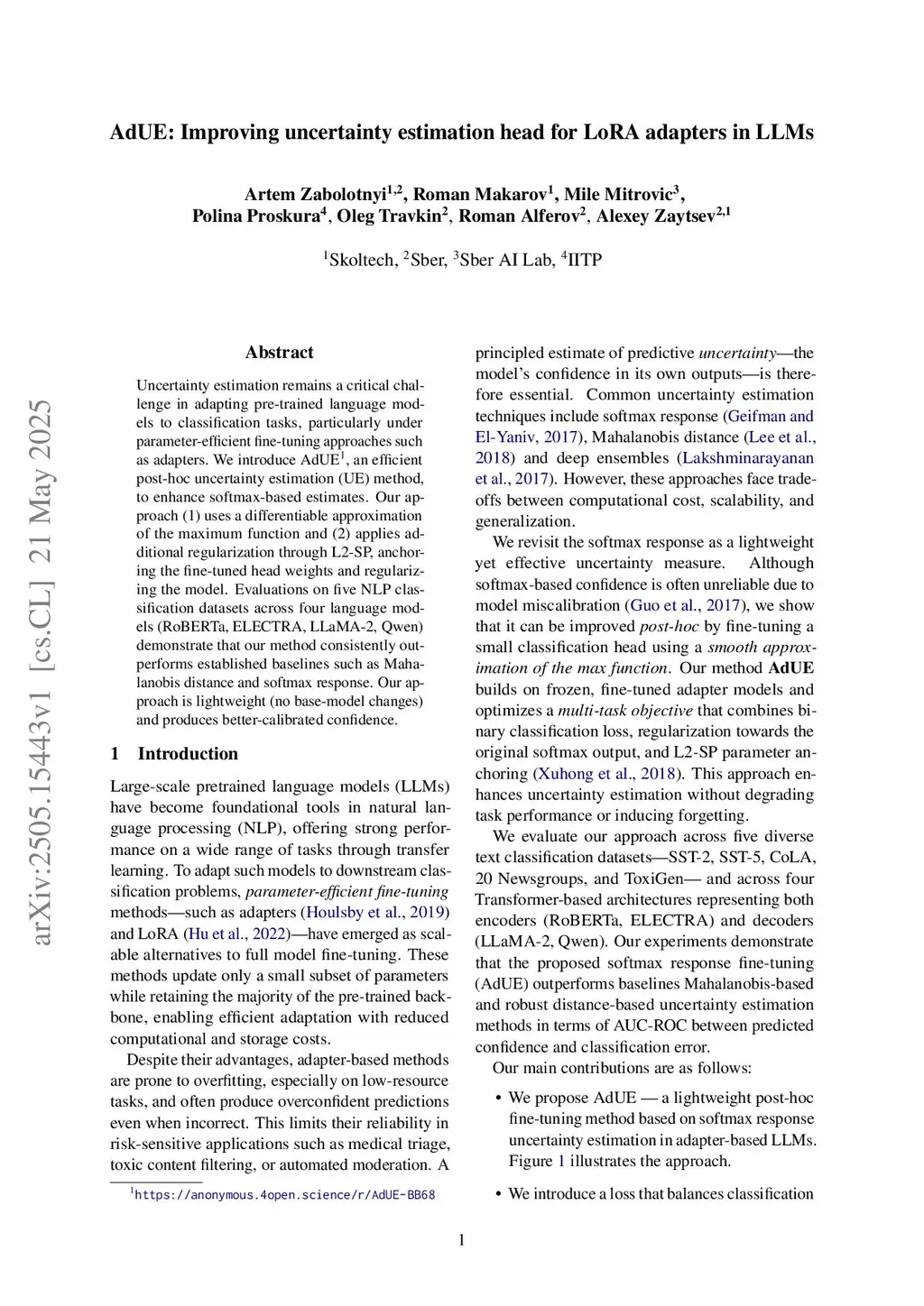 AdUE: Improving uncertainty estimation head for LoRA adapters in LLMs